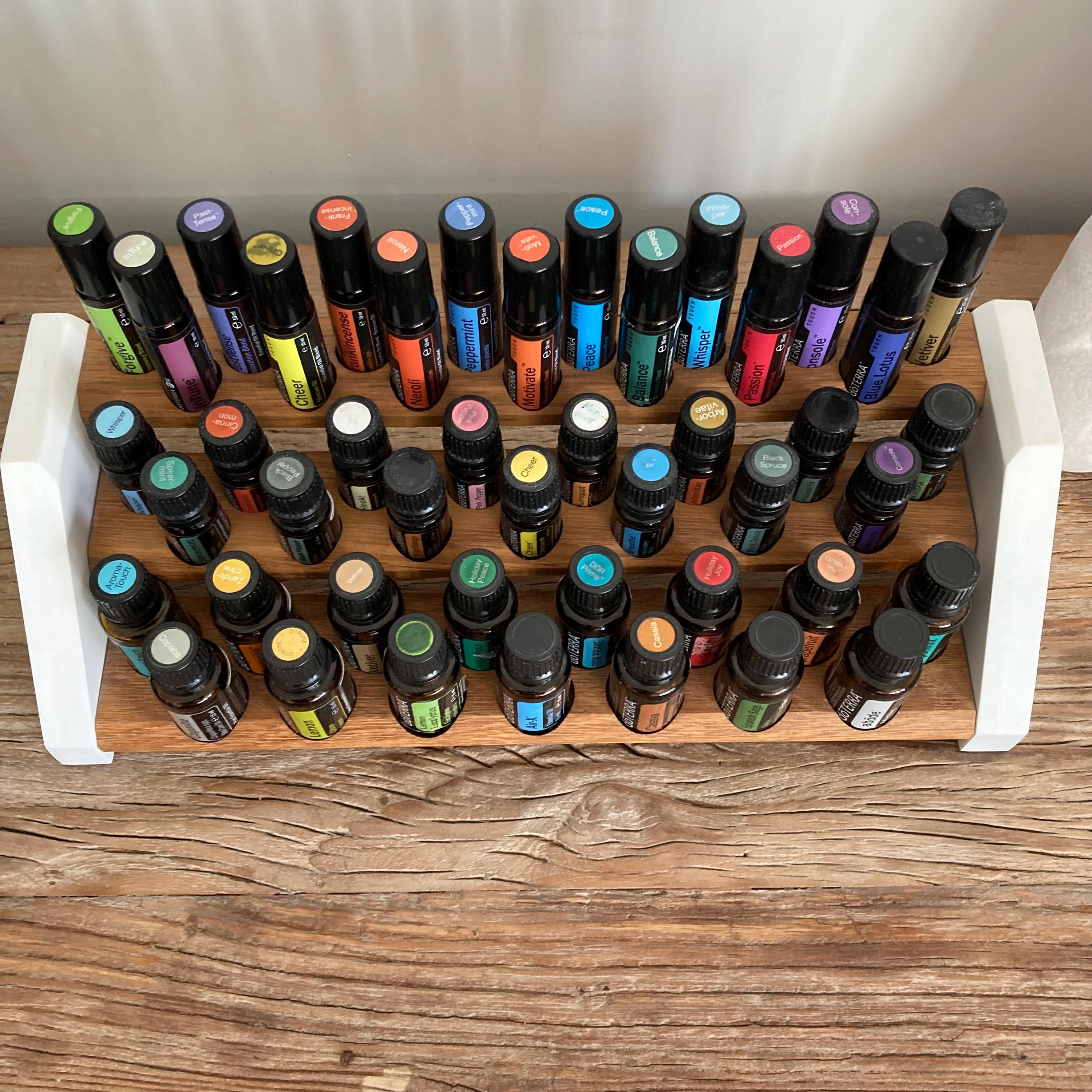 This oil rack is ideal for anyone using 15ml bottles, 5ml bottles, and 10ml roll-ons. It holds 15 oil bottles each (30mm, 24mm, and 22mm diameters).