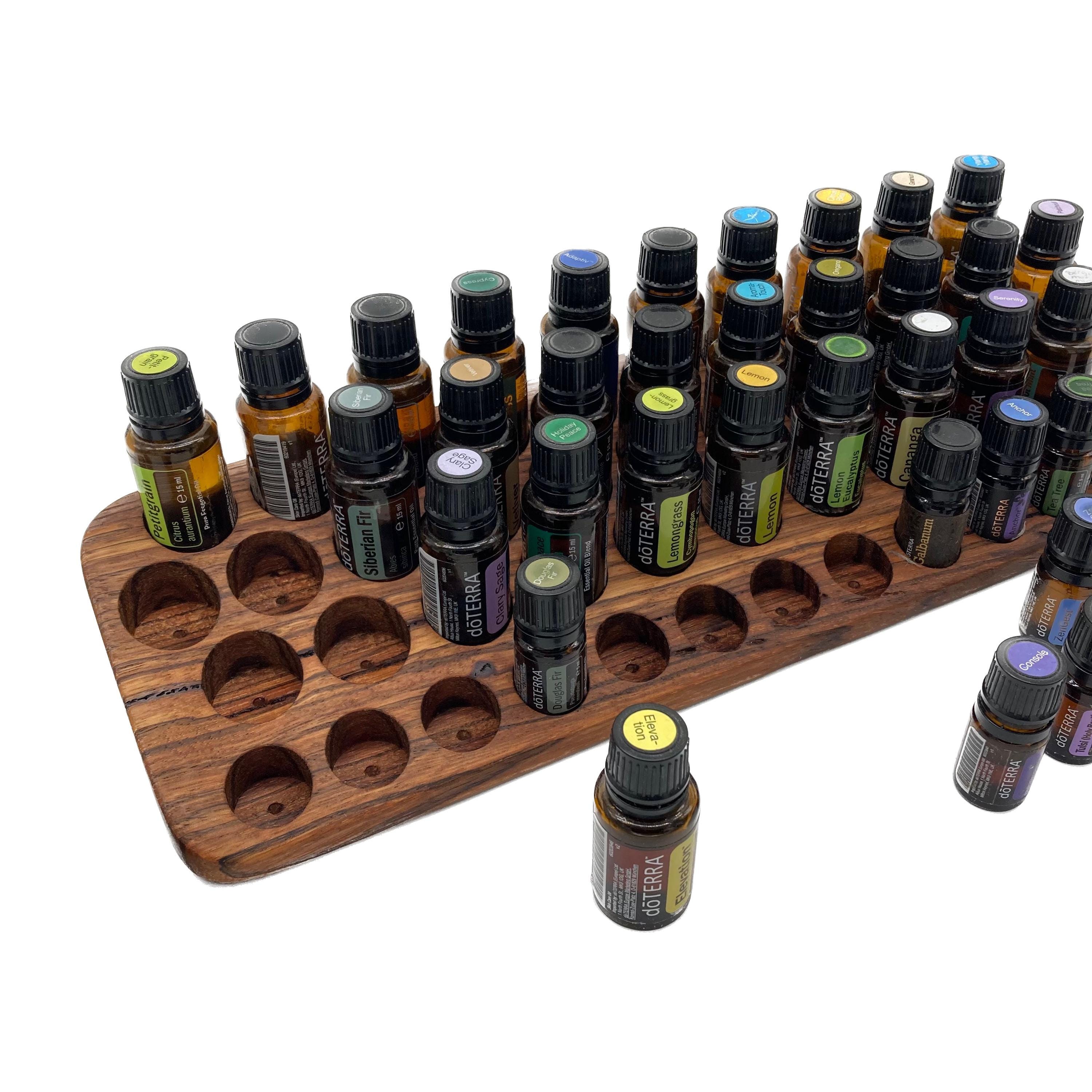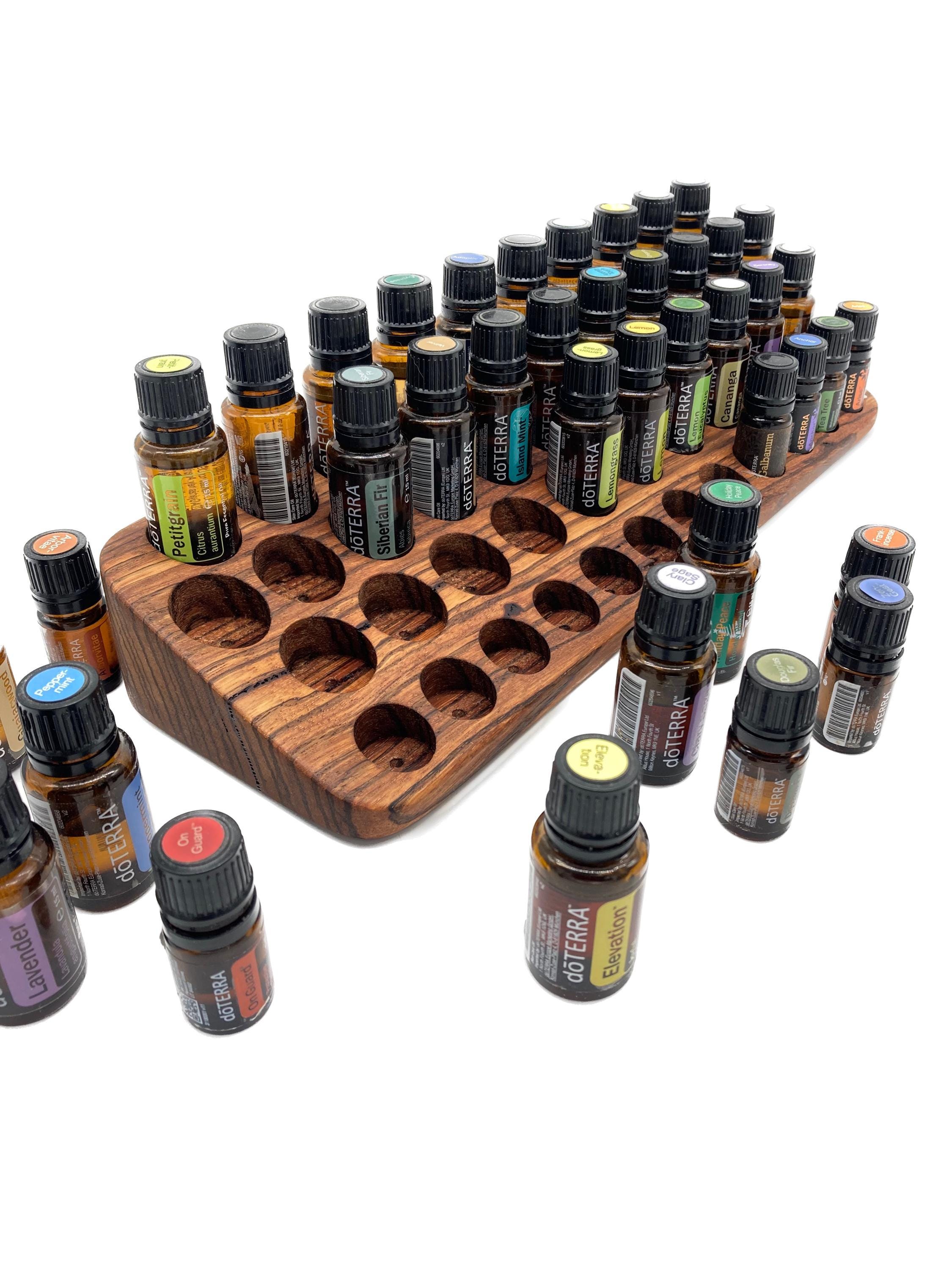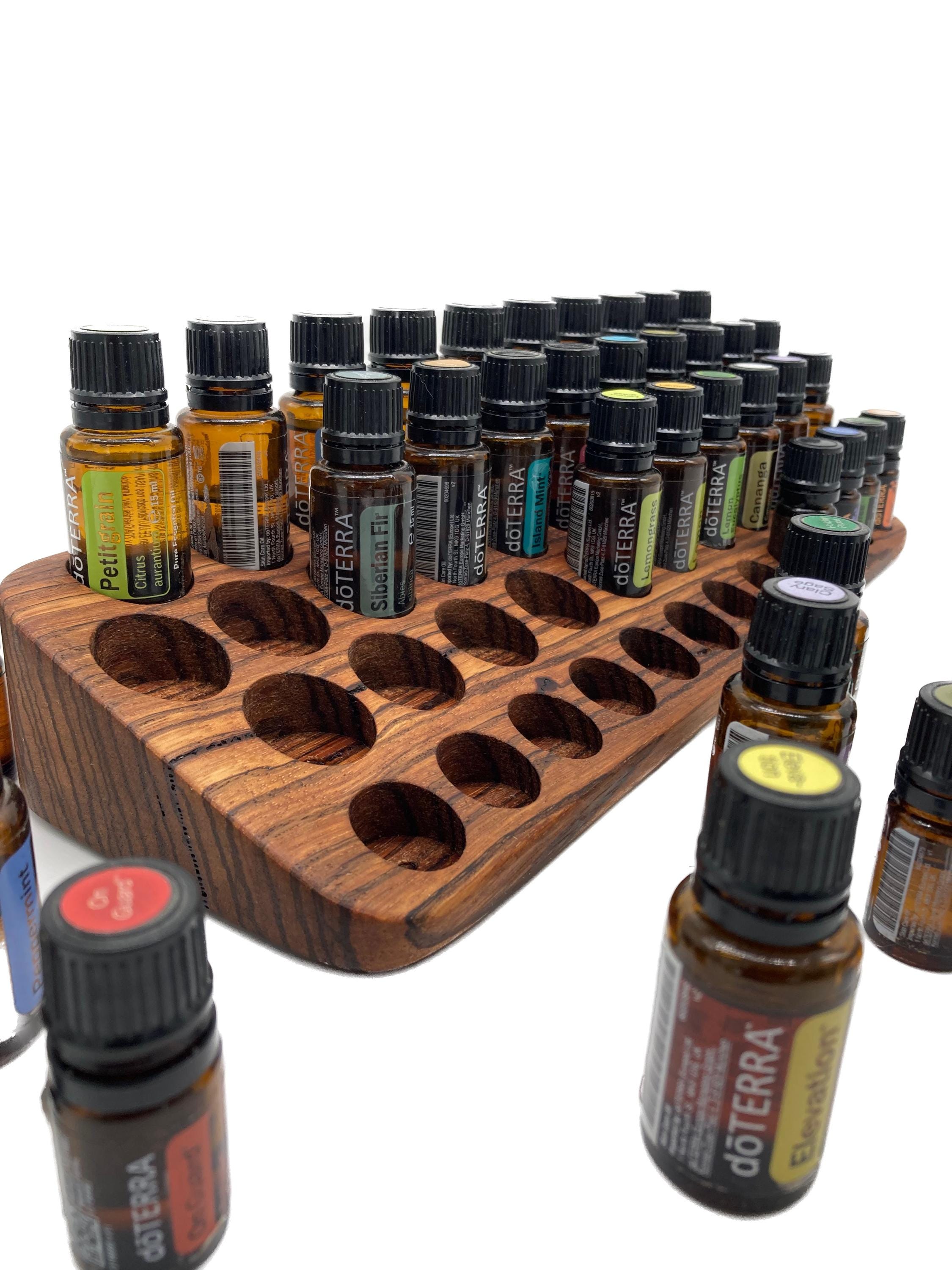 This display is ideal for anyone who uses oils with a 15ml bottle content (diameter 29 mm) and also bottles with a 5ml content (diameter 24 mm). It has space for 31 oil bottles (diameter 28 mm) and 12 spaces for 5ml bottles (24 mm). The staggered arrangement means you can read each label easily. The front of the oil stand is slightly slanted. This improves handling and overview, and also looks incredibly chic and elegant.