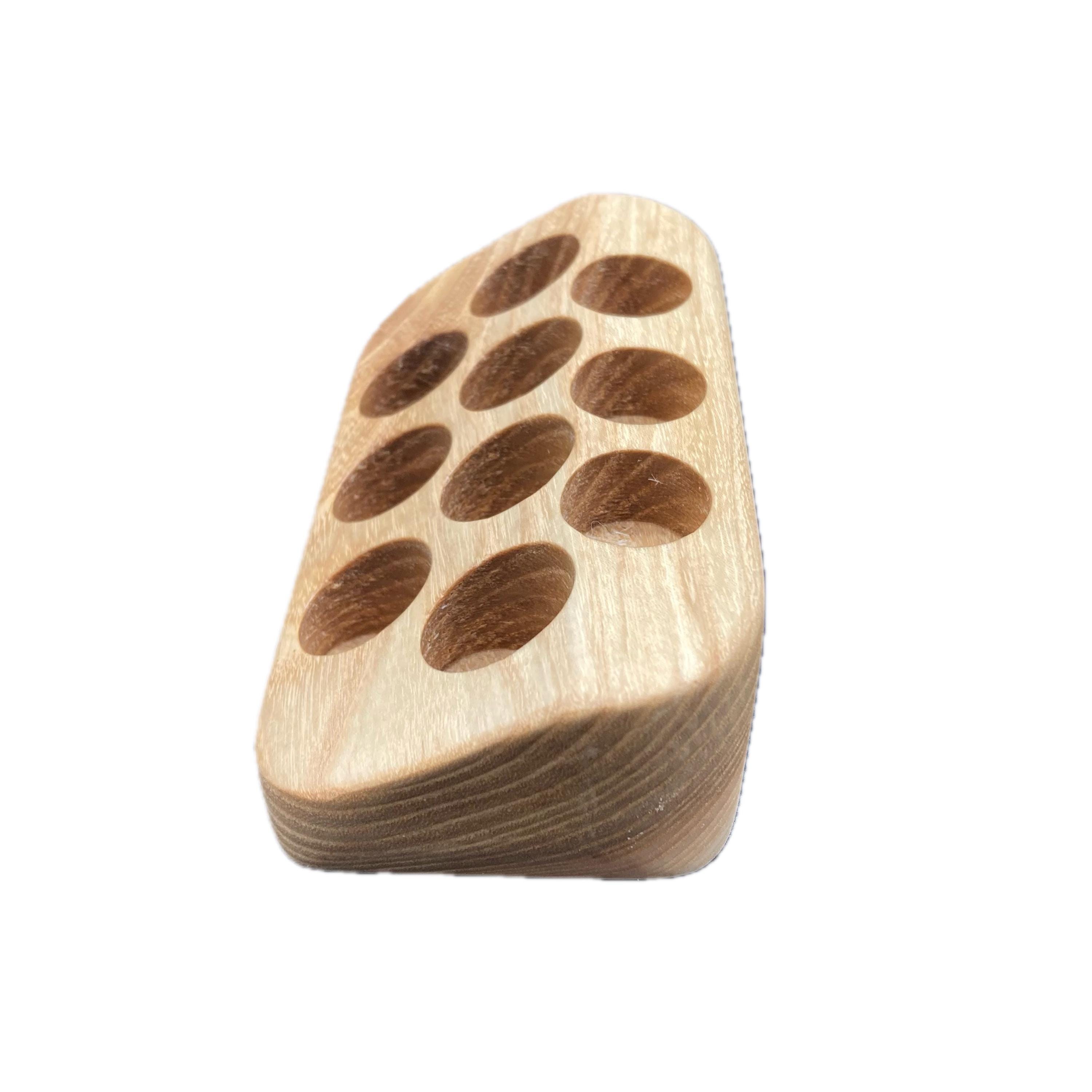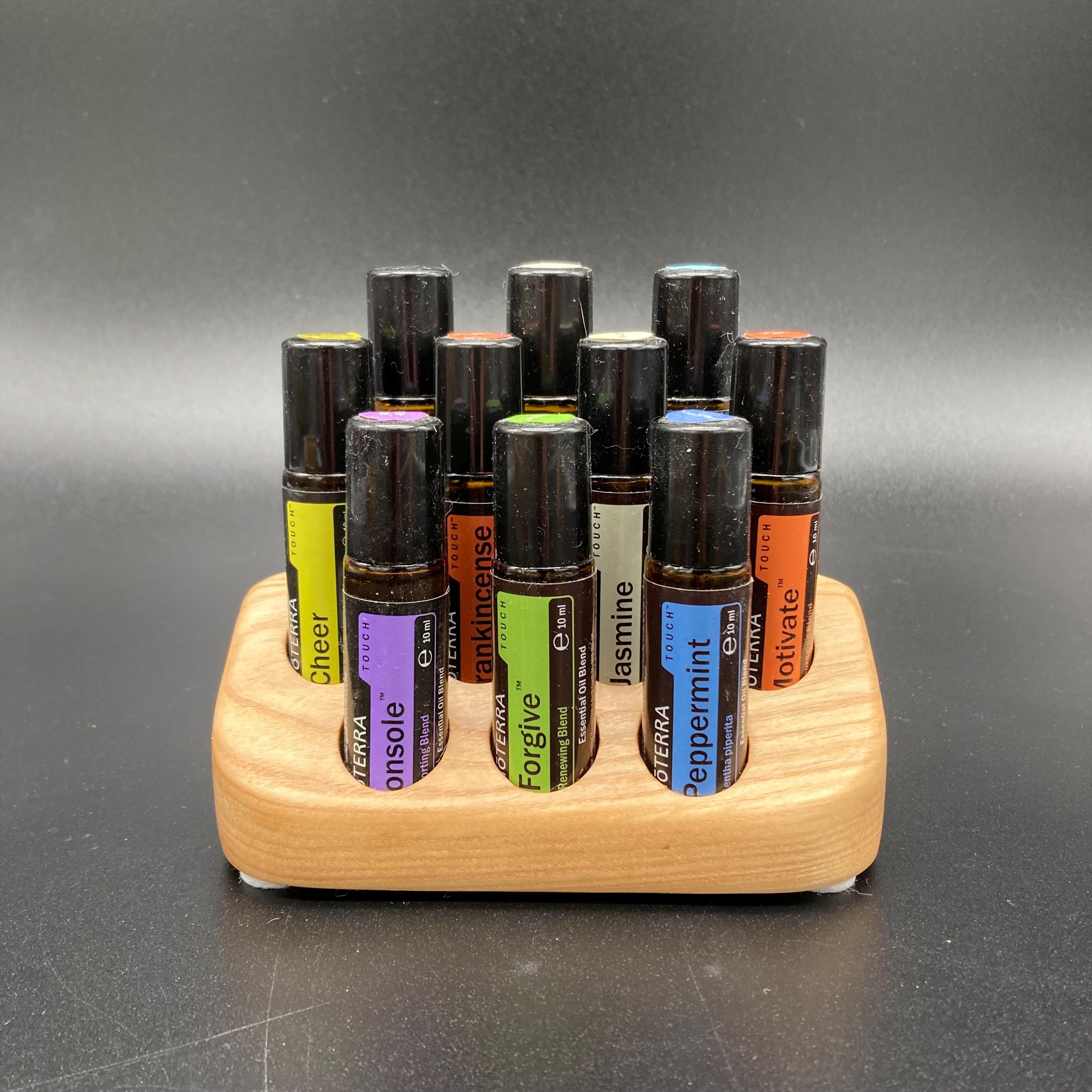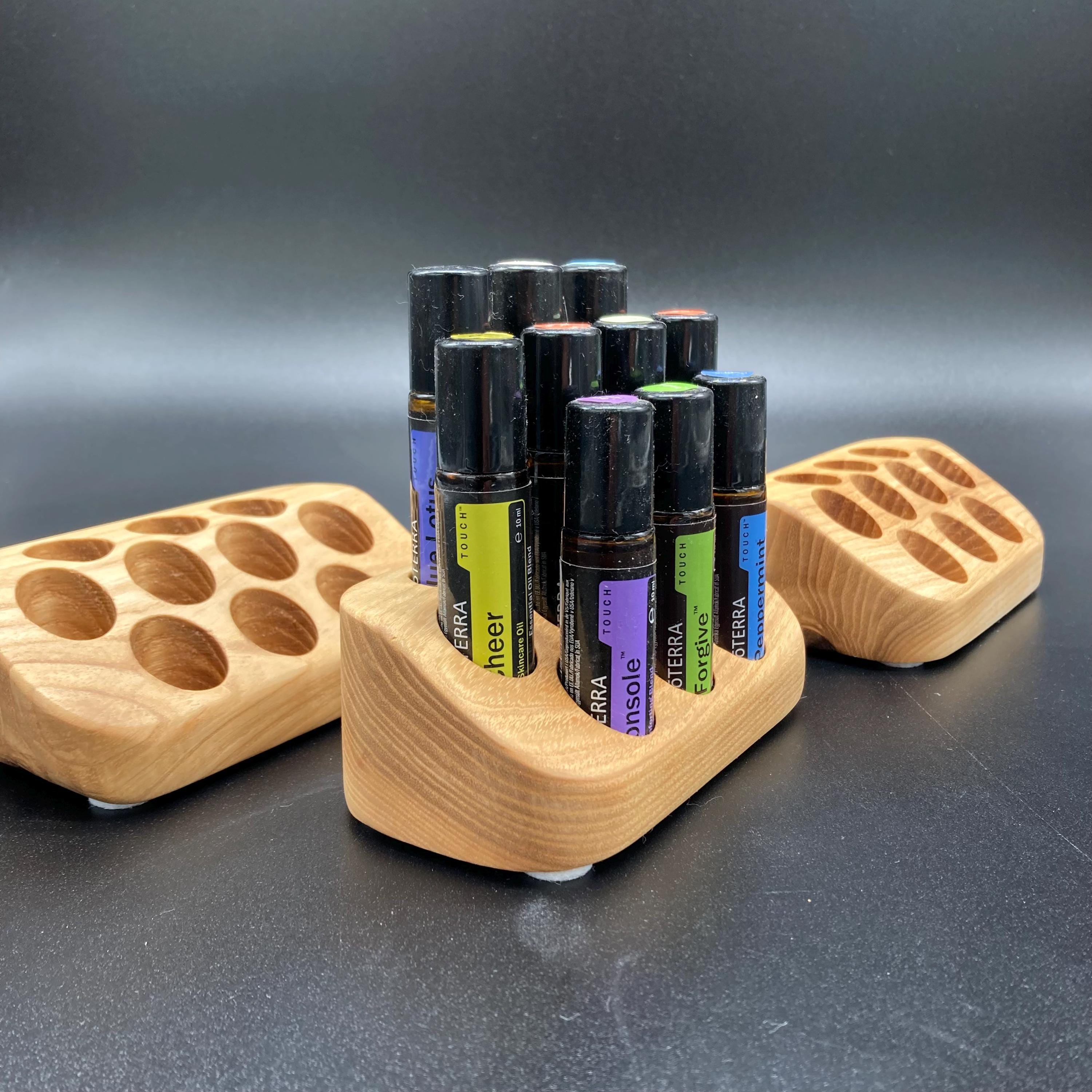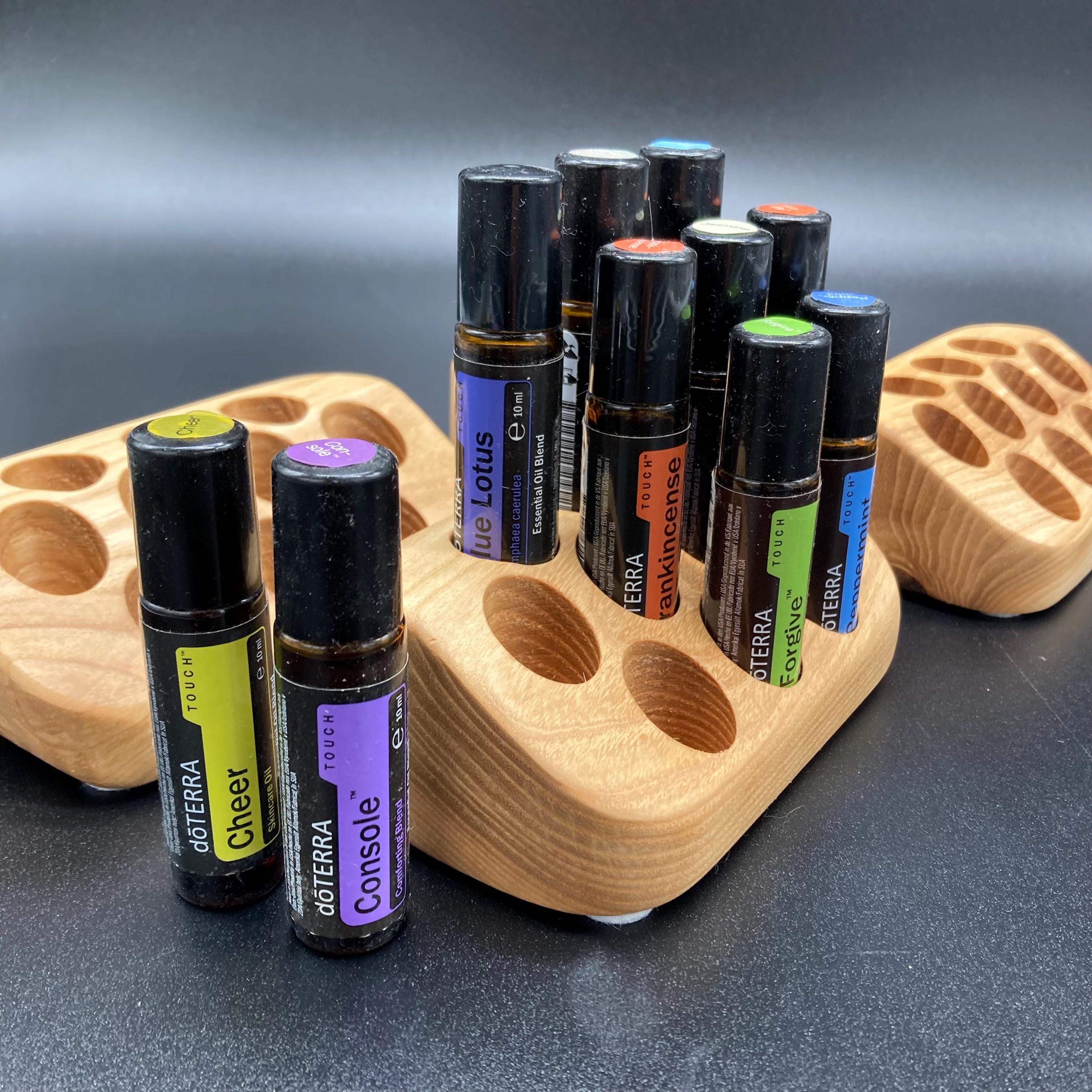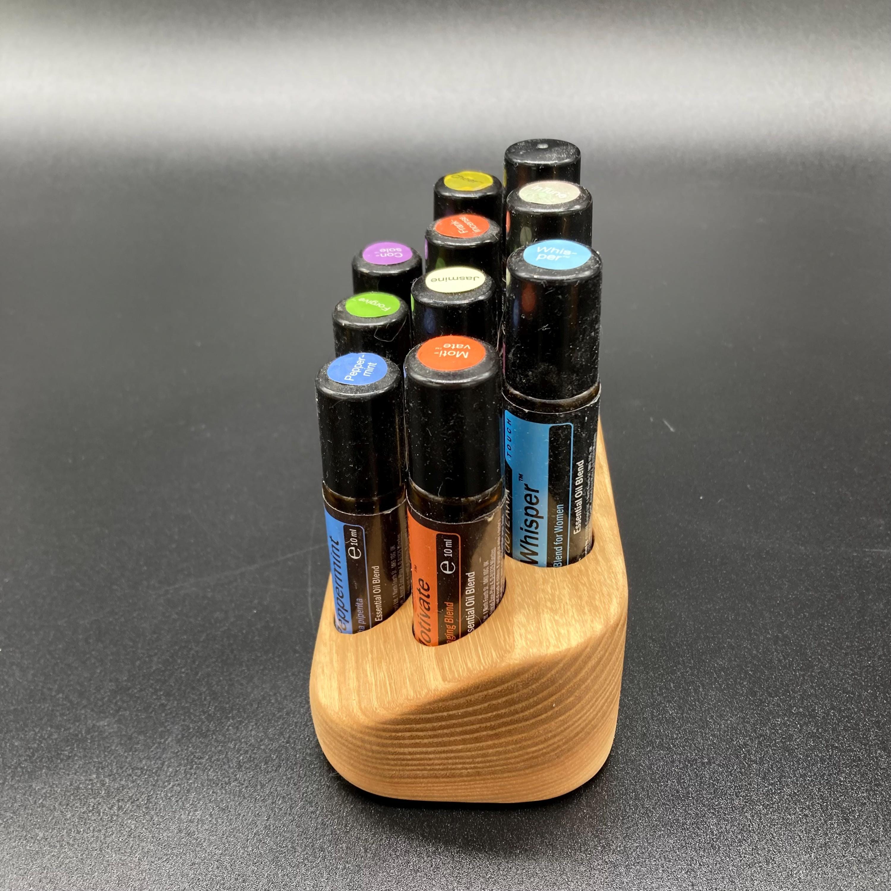 This display is ideal for anyone using 10ml (21mm diameter) oil roll-ons. The staggered arrangement ensures that each label is easy to read. The front of the oil stand is slightly angled, improving handling and visibility, and also giving it a very chic and elegant look.