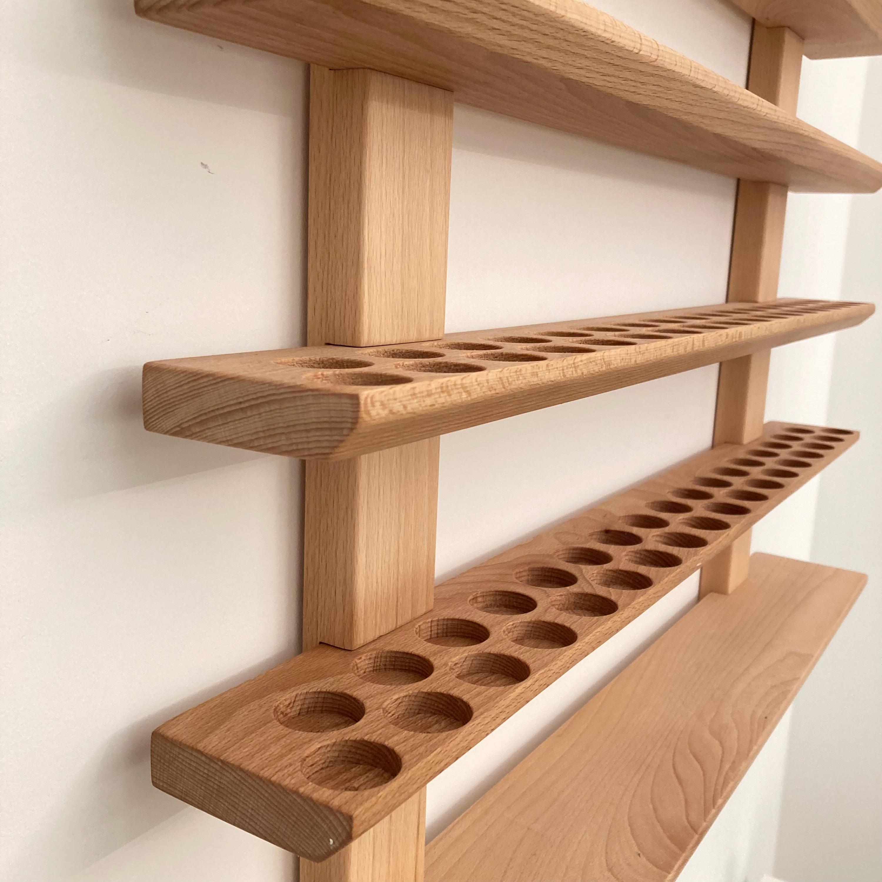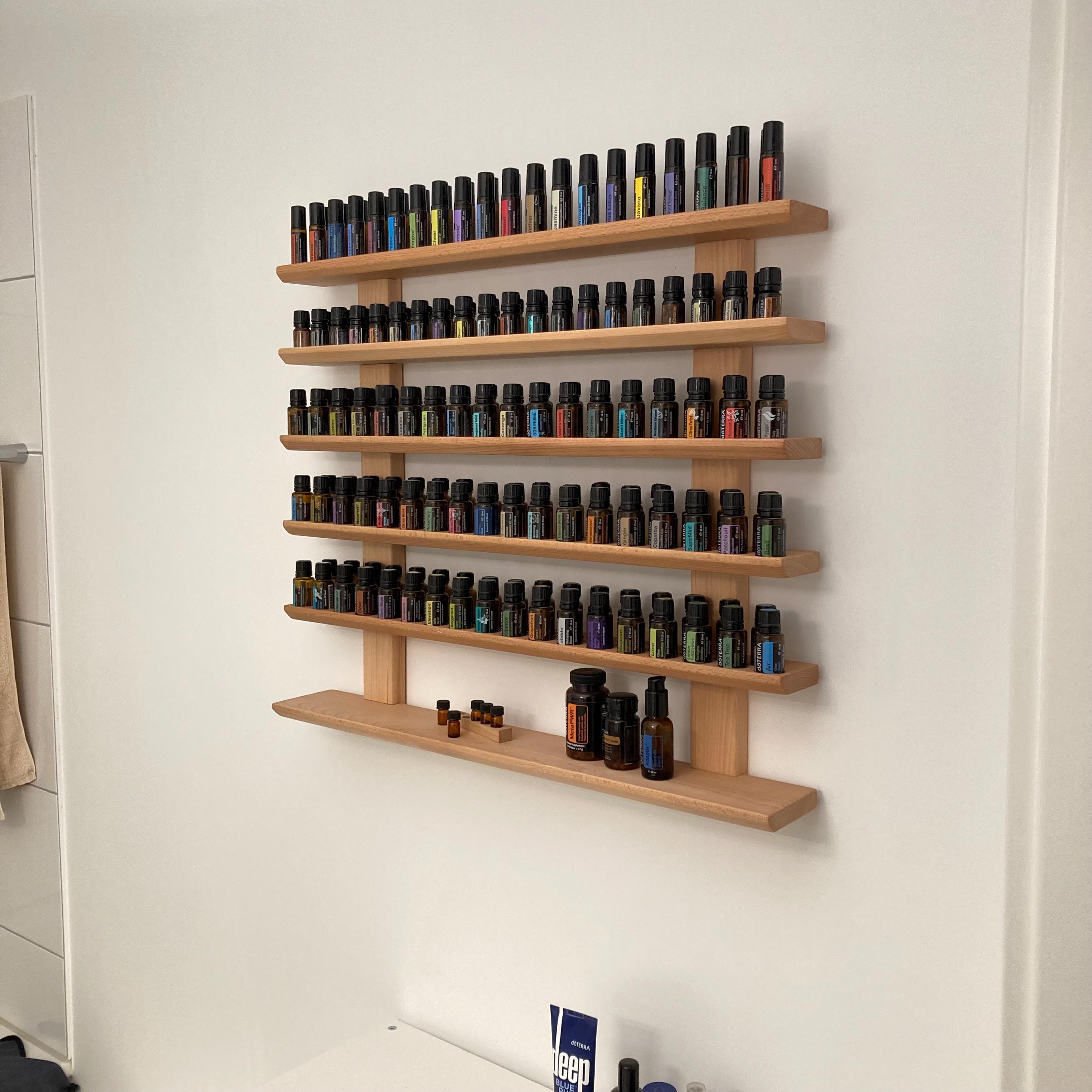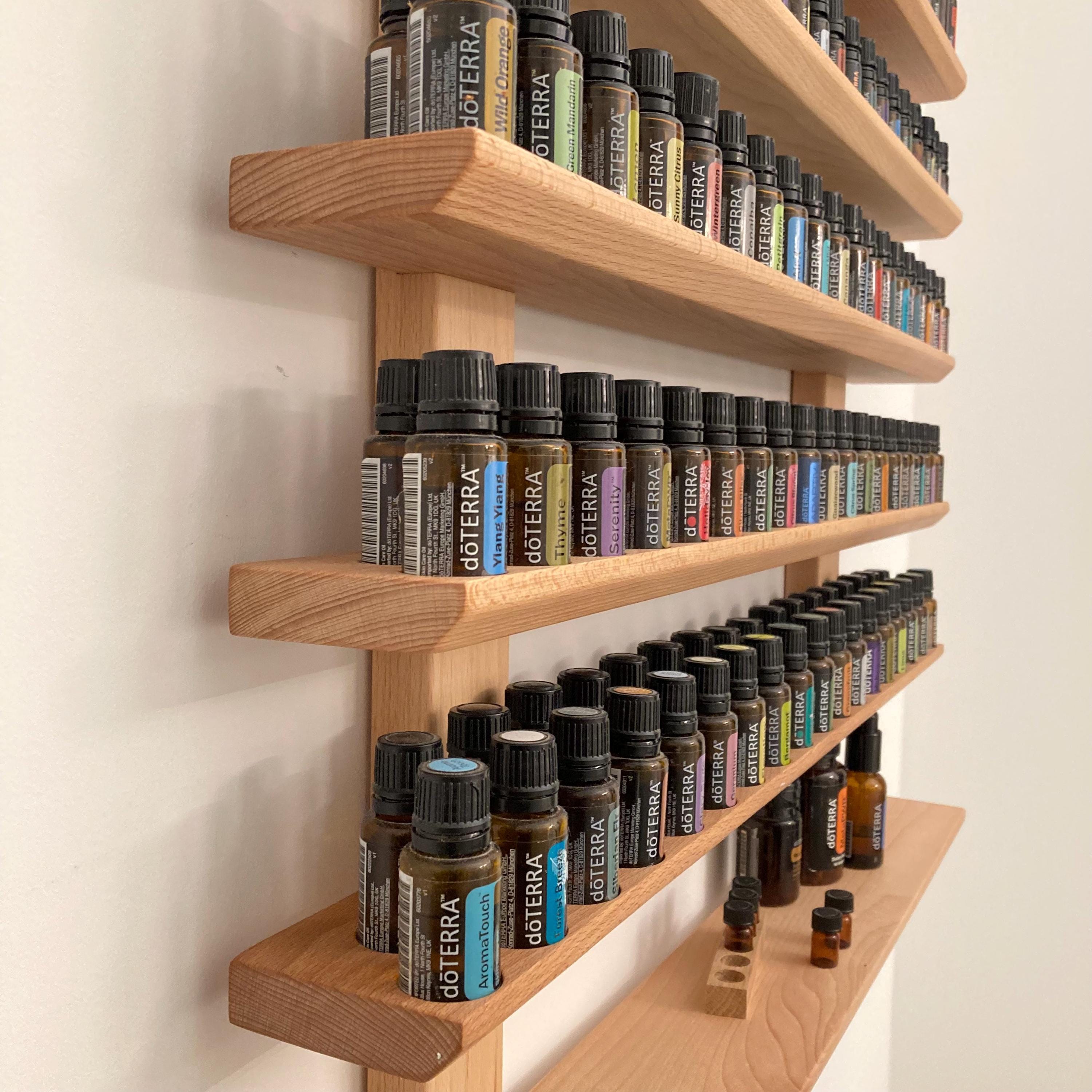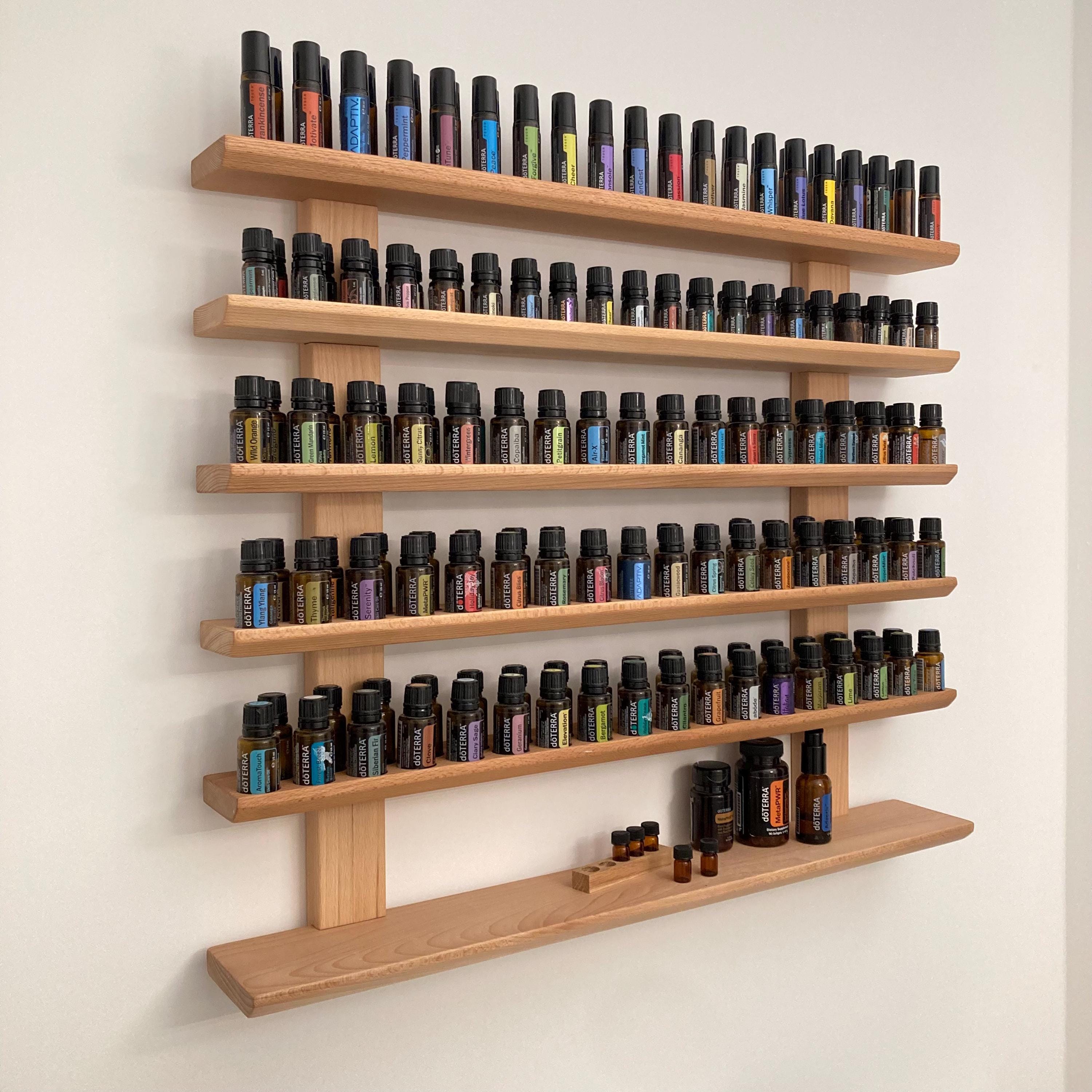 This shelf, made from sustainable wood, offers a stylish and practical solution for storing your essential oils.