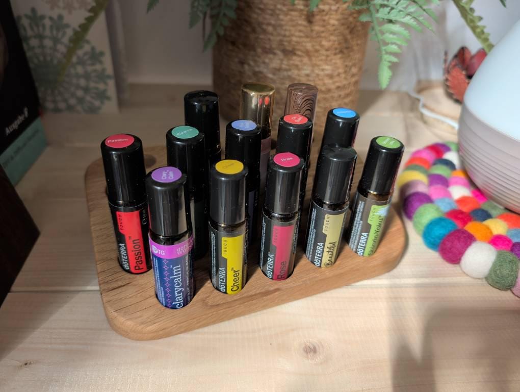 This display is ideal for anyone using 10ml oil bottles and roll-on applicators. It holds 27 oil bottles (18mm diameter), with a 21mm hole. The hole depth is designed to prevent the bottles from falling out. This means you can confidently carry the display around the house or pick it up for demonstrations, showcasing your oils to their best advantage. All of this improves handling and organization, and it also looks incredibly chic and elegant.