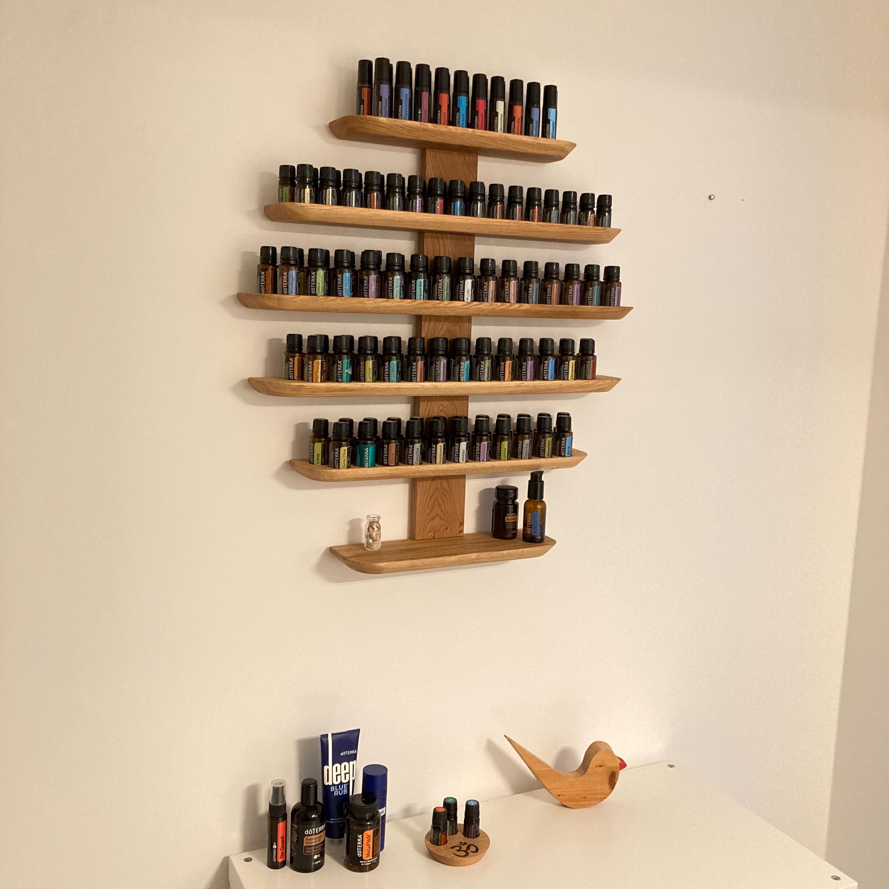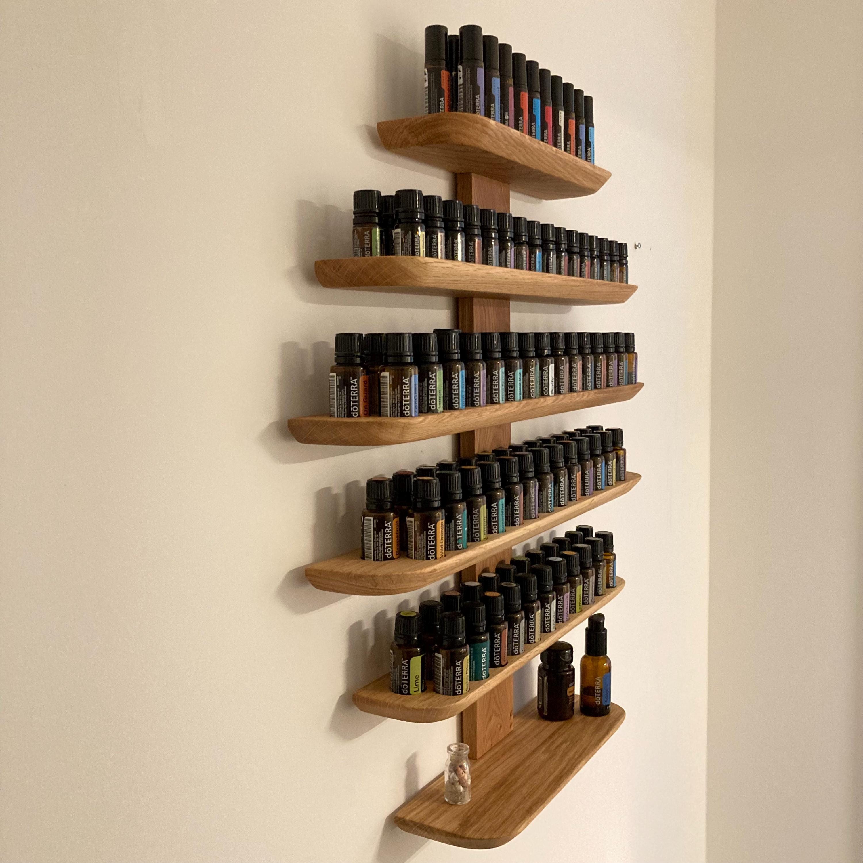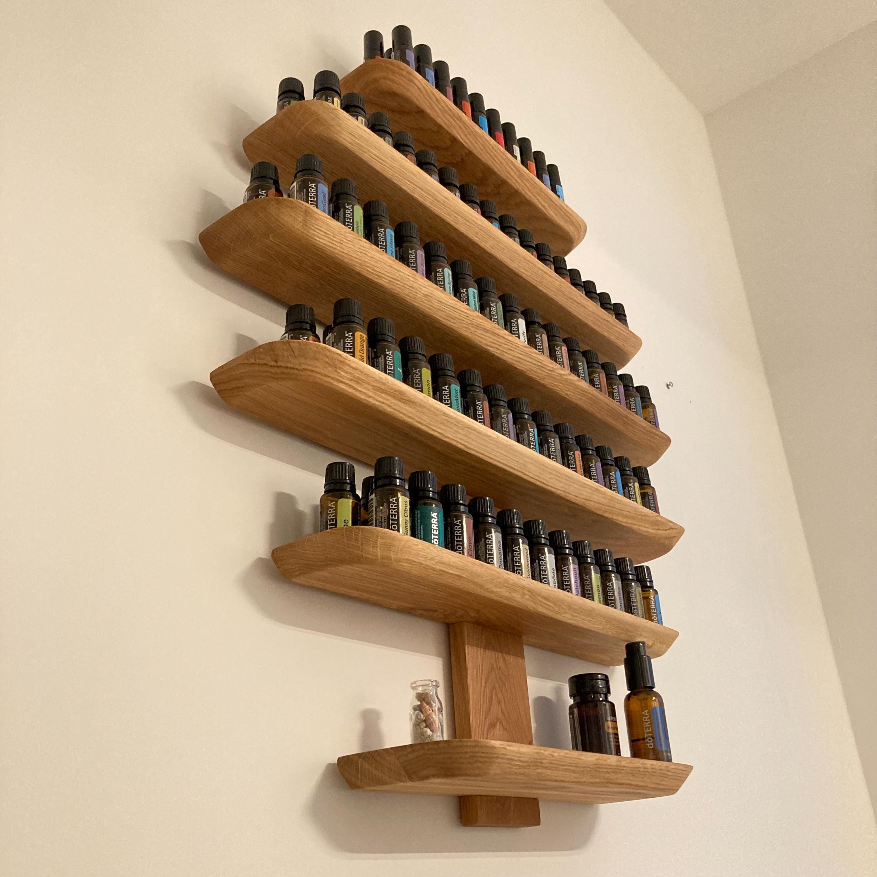 This shelf, made from sustainable wood, offers a stylish and practical solution for storing your essential oils.