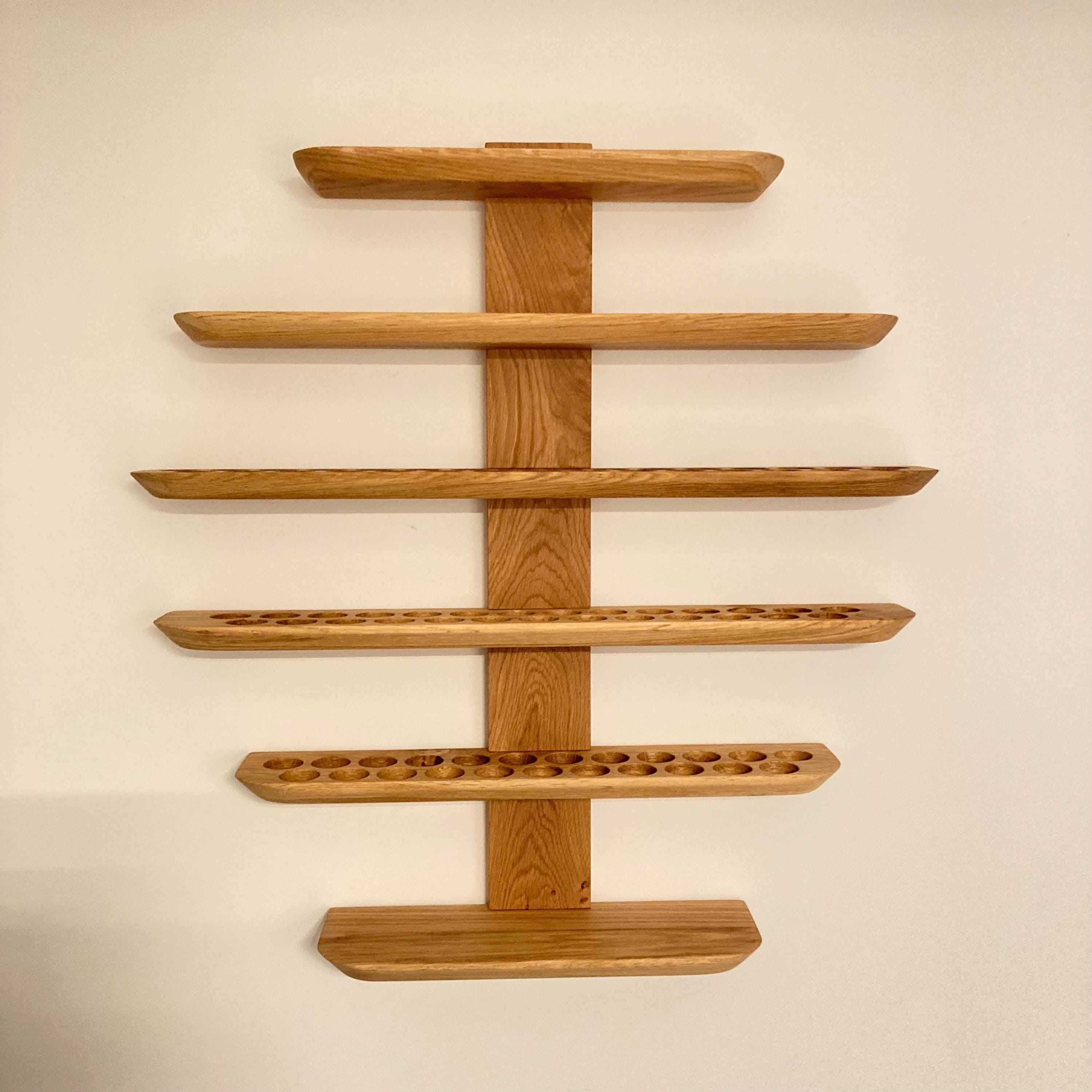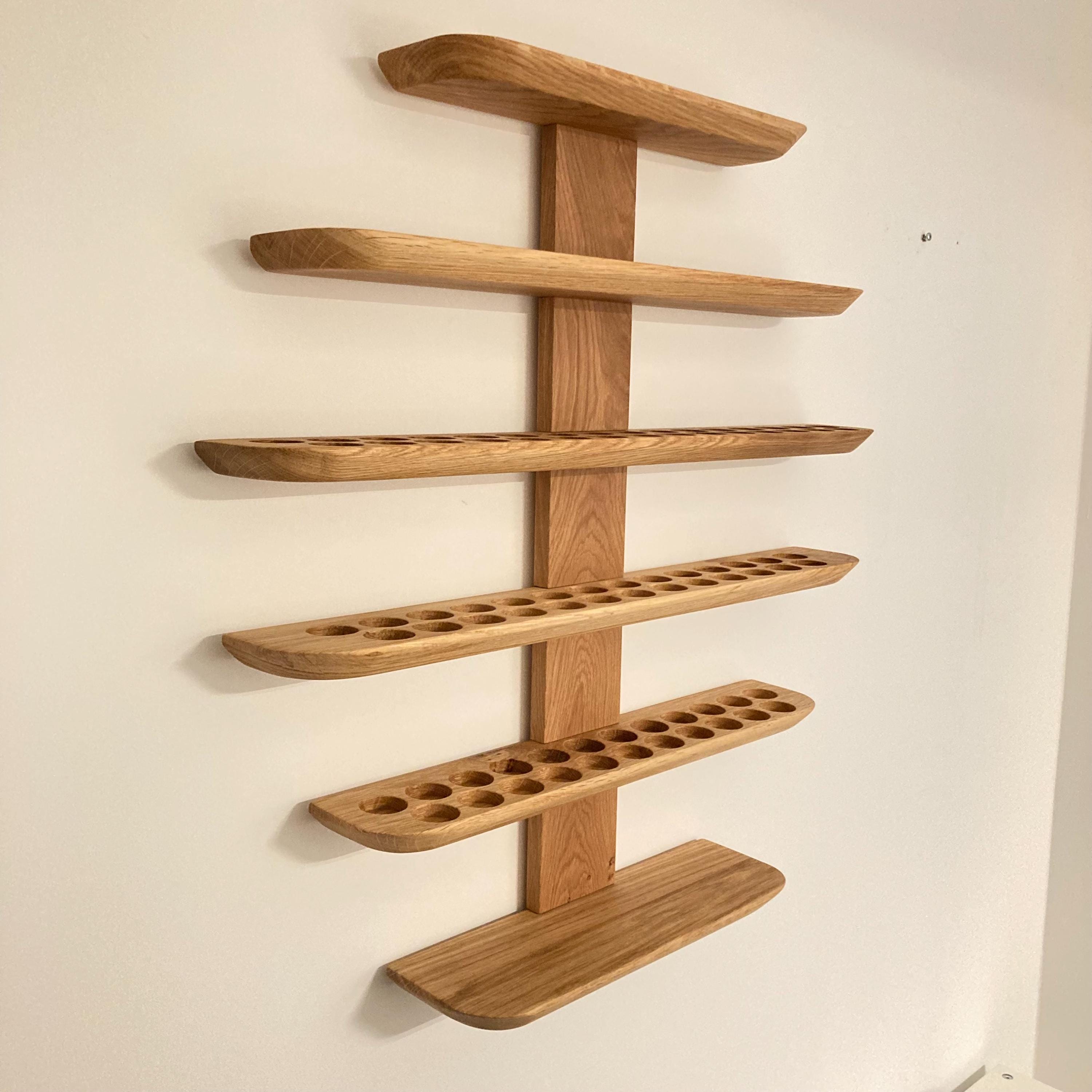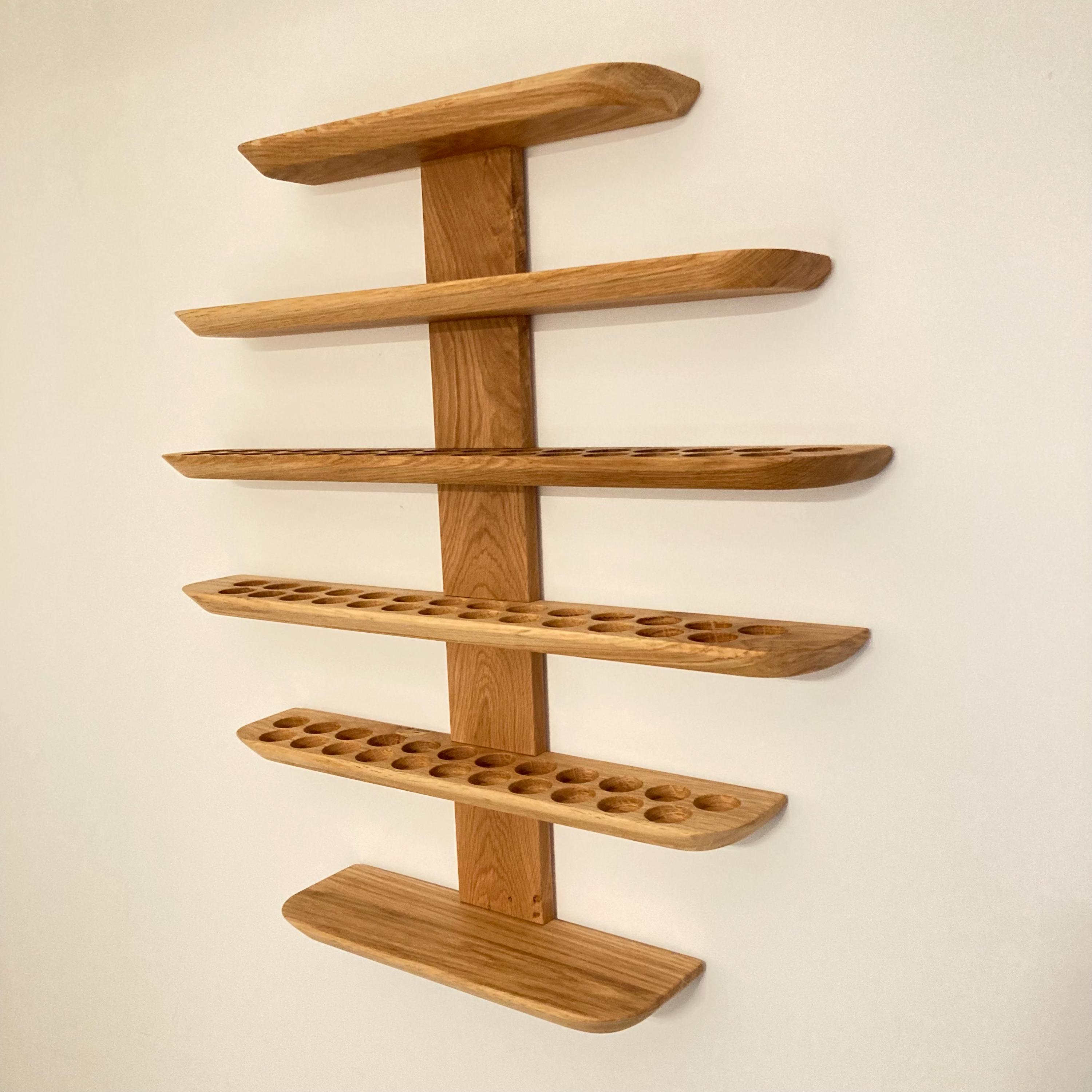 This wall-mounted oil rack is ideal for anyone using 15ml and 5ml oils, as well as 10ml roll-on bottles. It holds 81 oil bottles (29mm diameter).