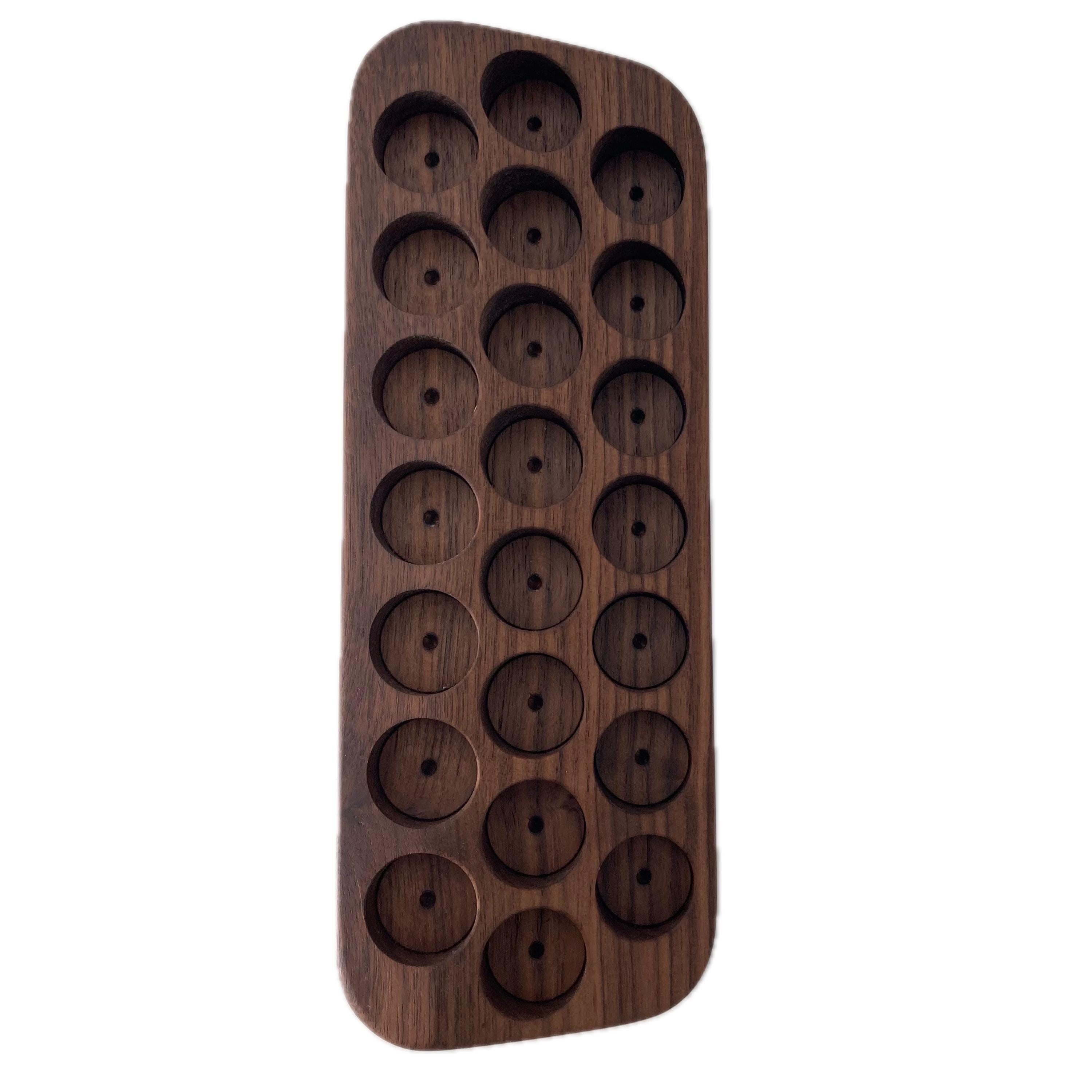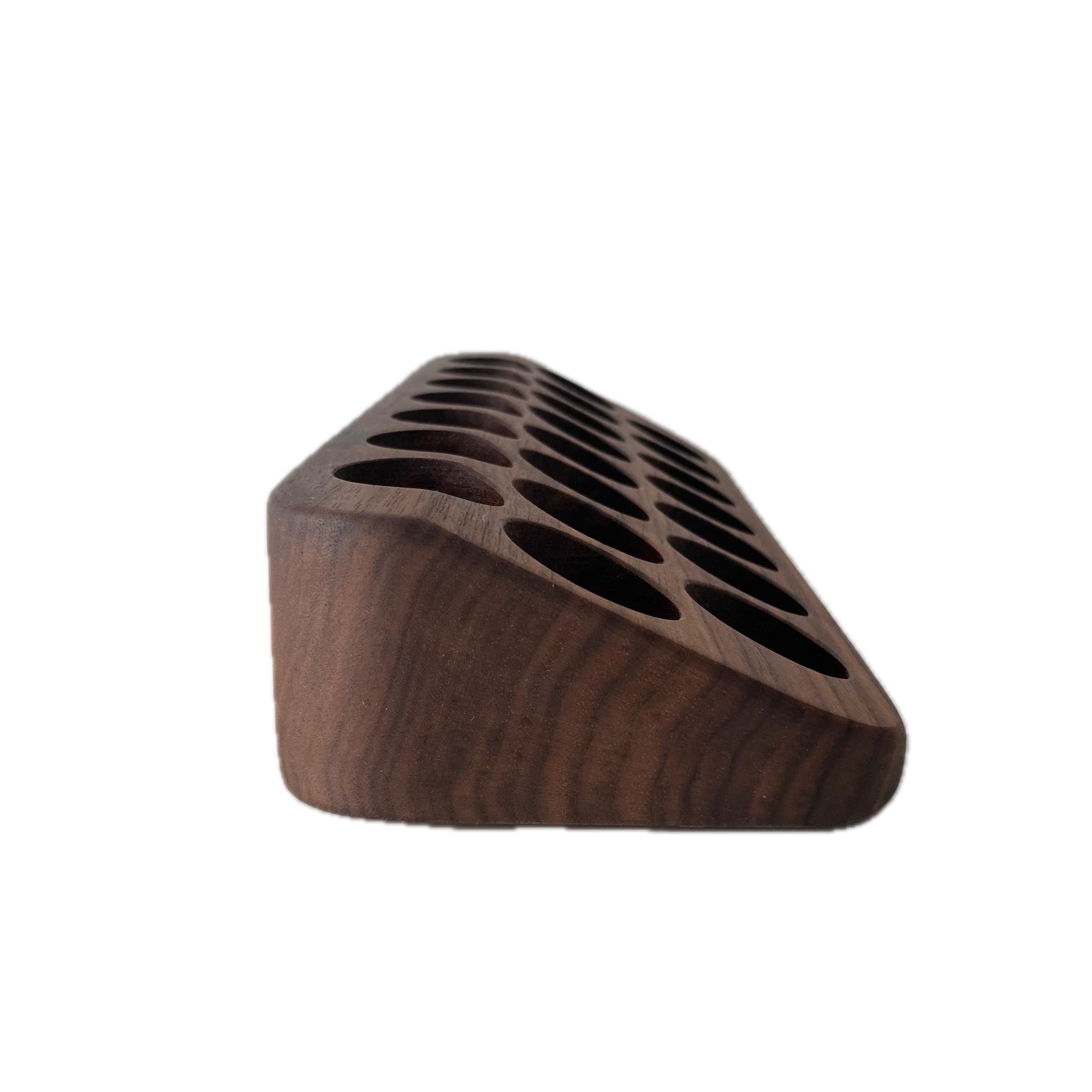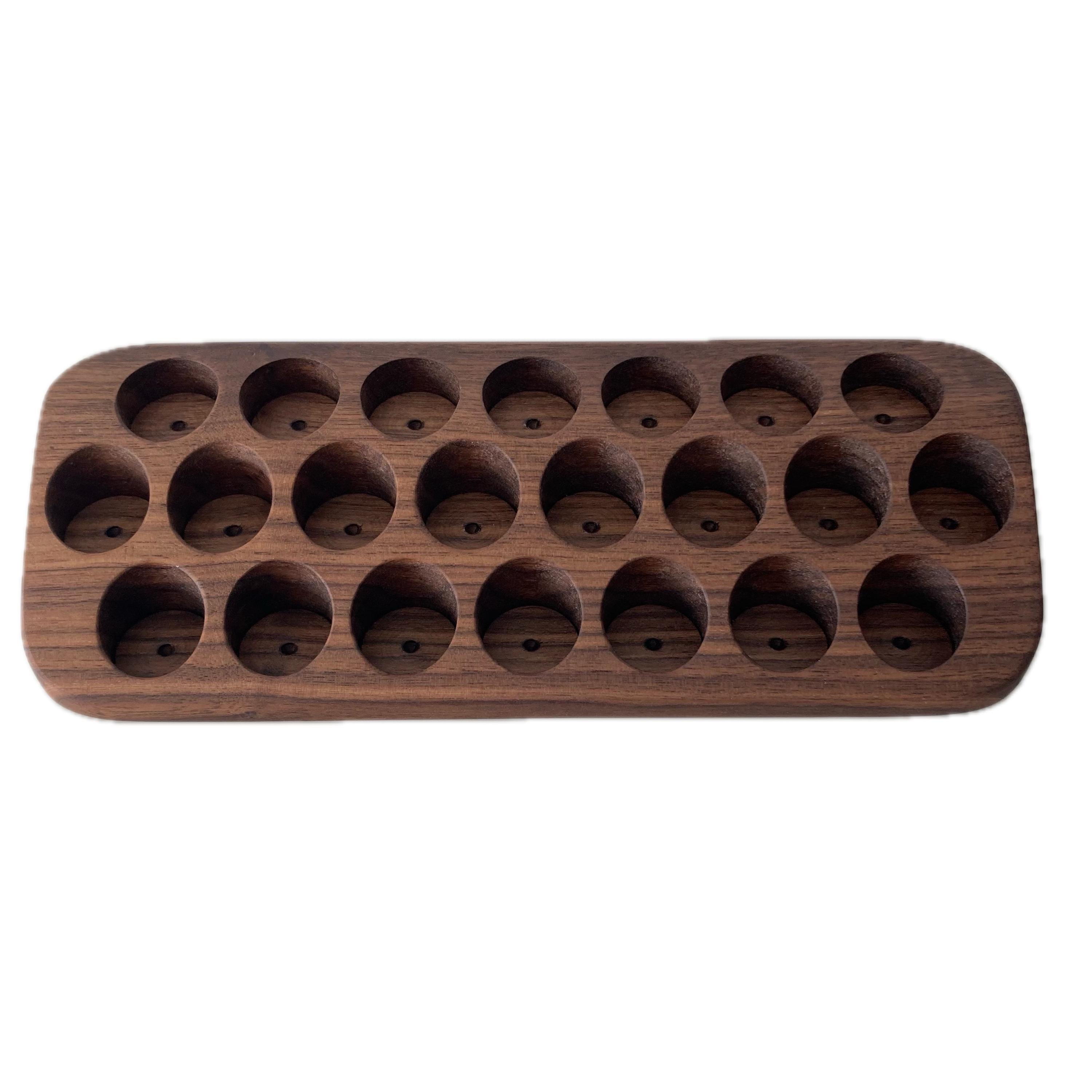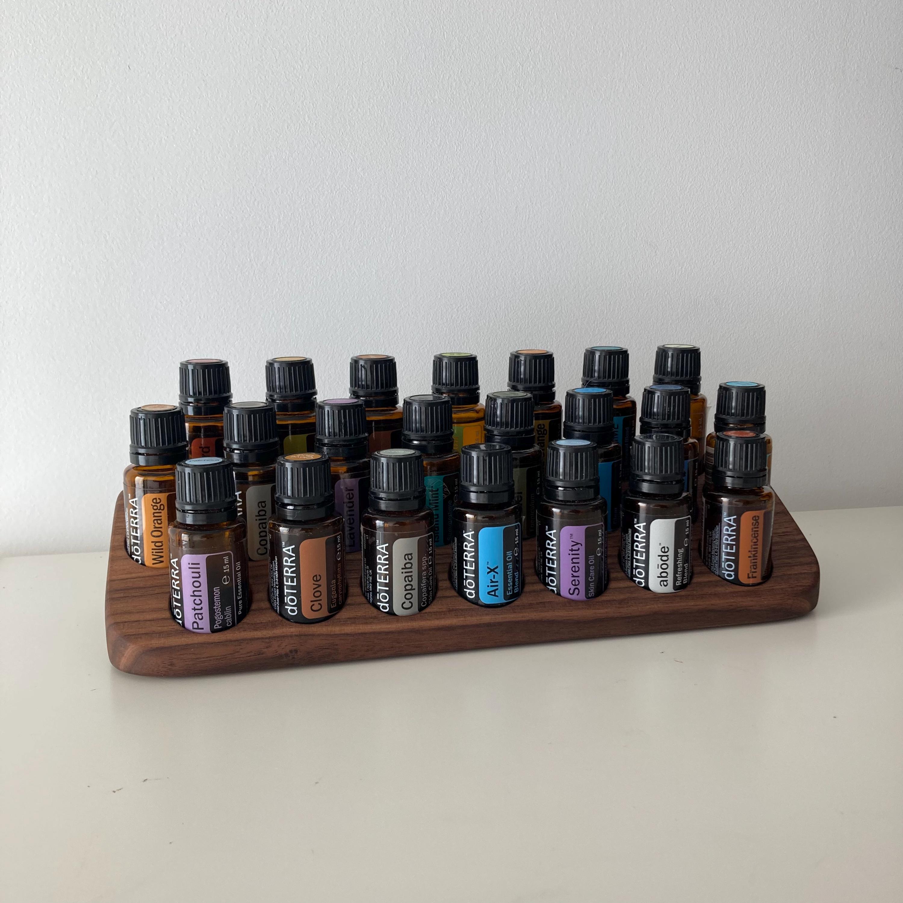 This display is ideal for all essential oils in 15ml bottles. It holds 22 oil bottles (28mm diameter). The staggered arrangement ensures that each label is easy to read. The front of the display is slightly angled, improving handling and visibility, and also giving it a very chic and elegant look.