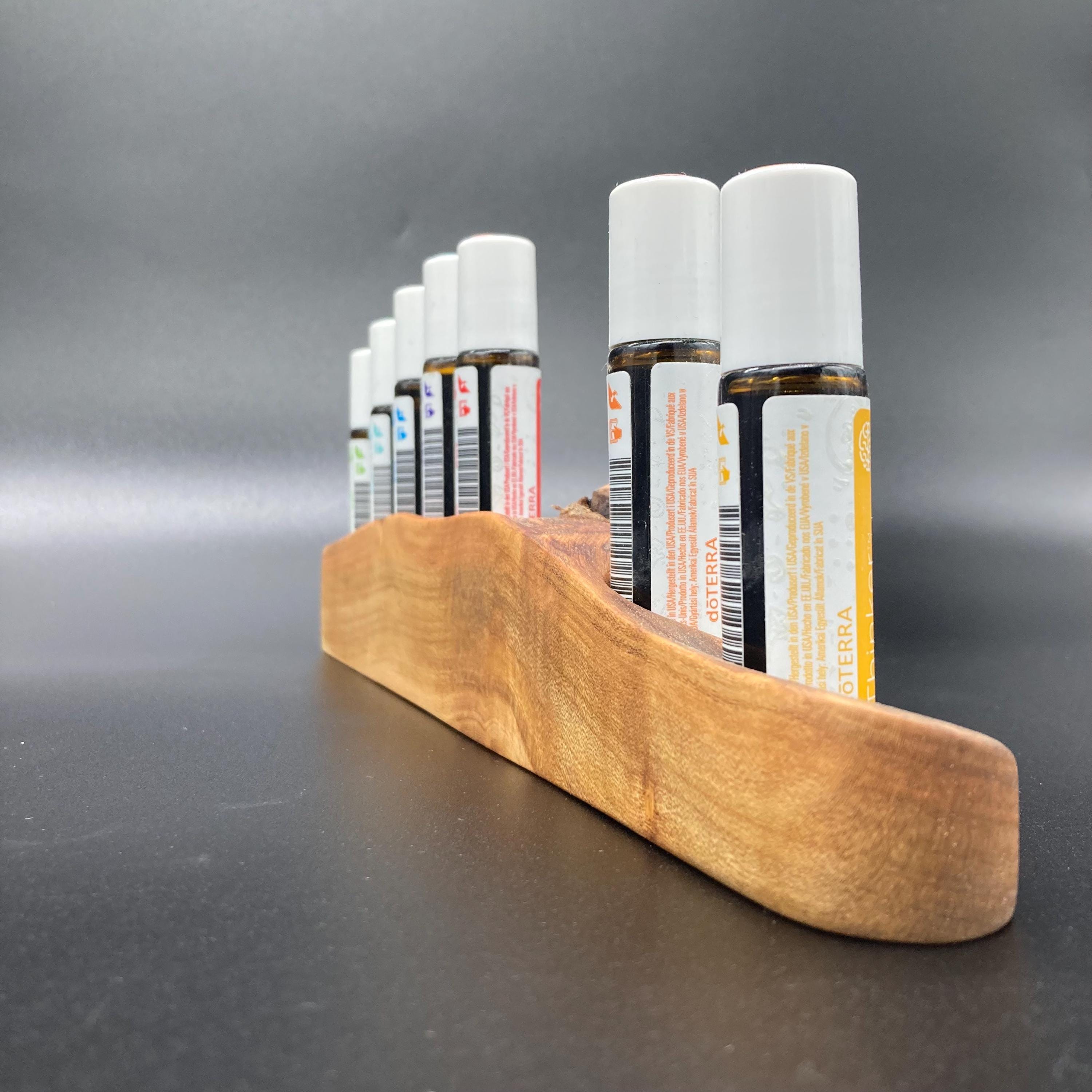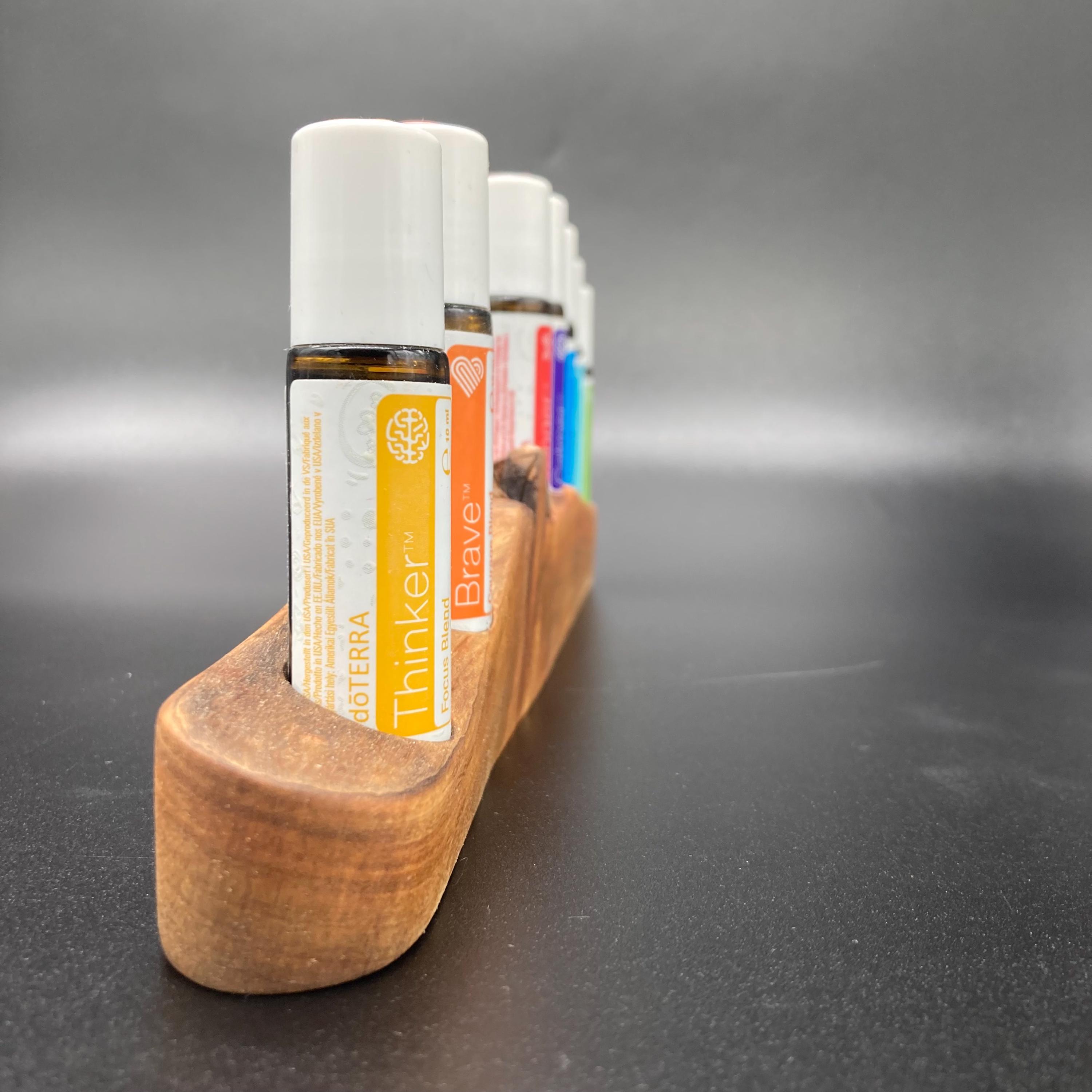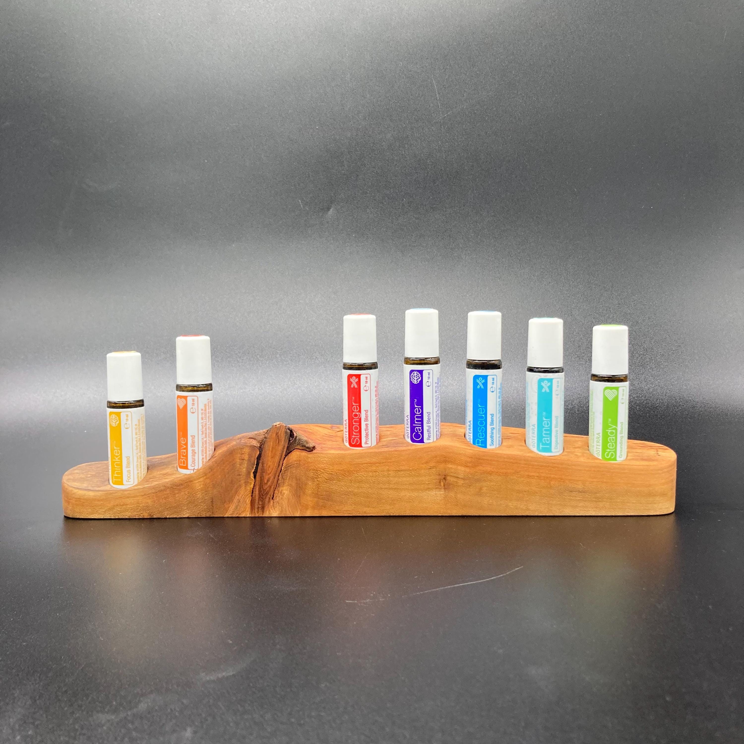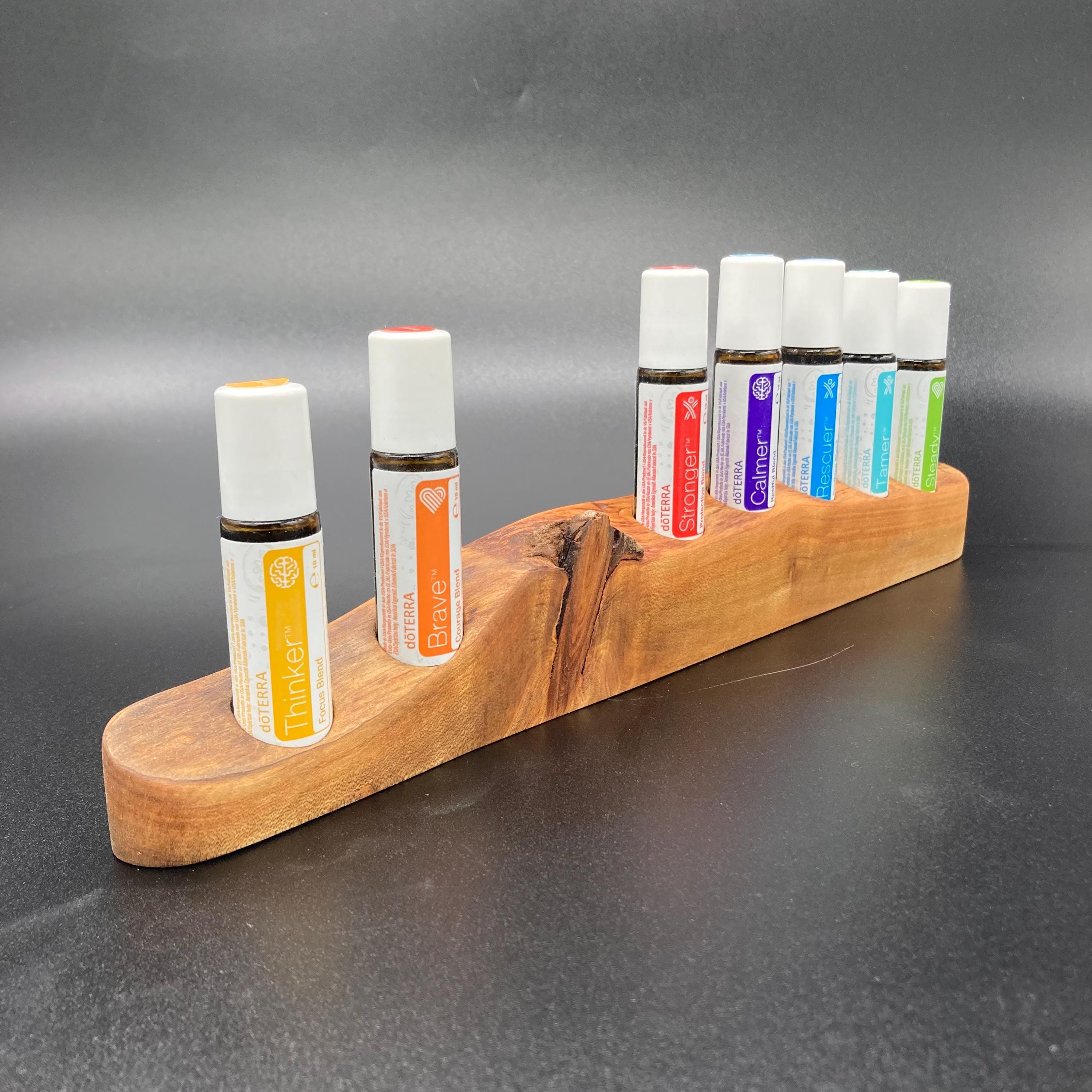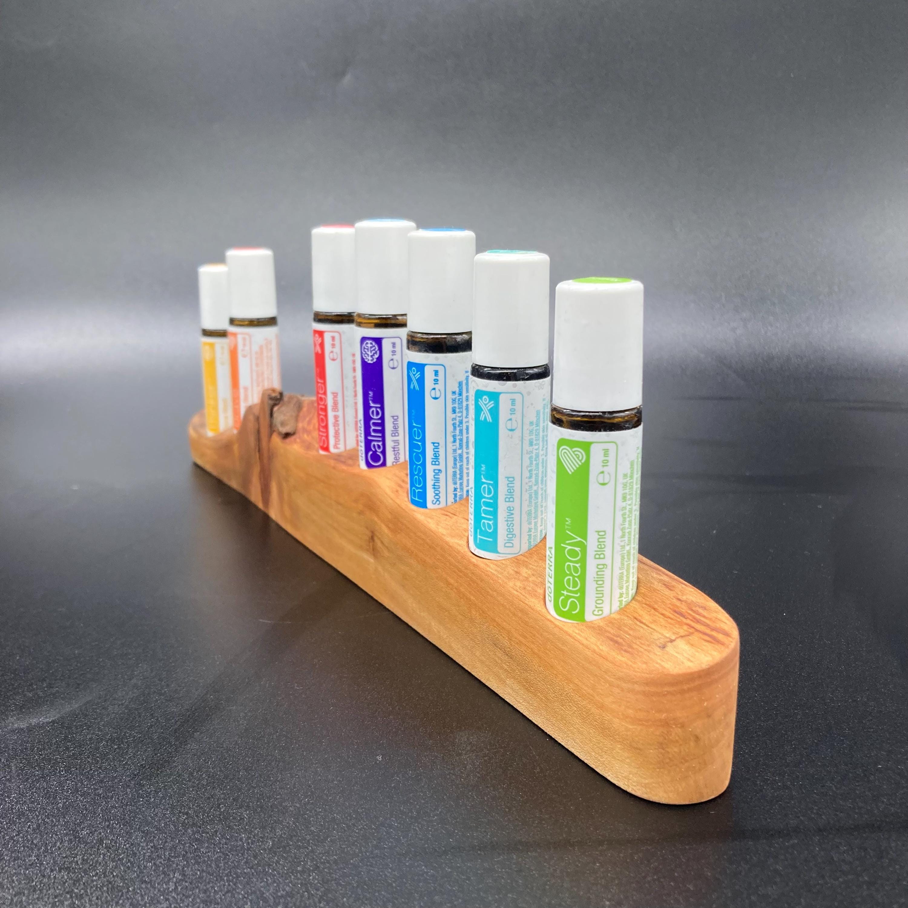 This display is ideal for anyone using 10ml bottled oils and roll-on applicators. It holds 7 oil bottles (18mm diameter), with a 21mm opening.