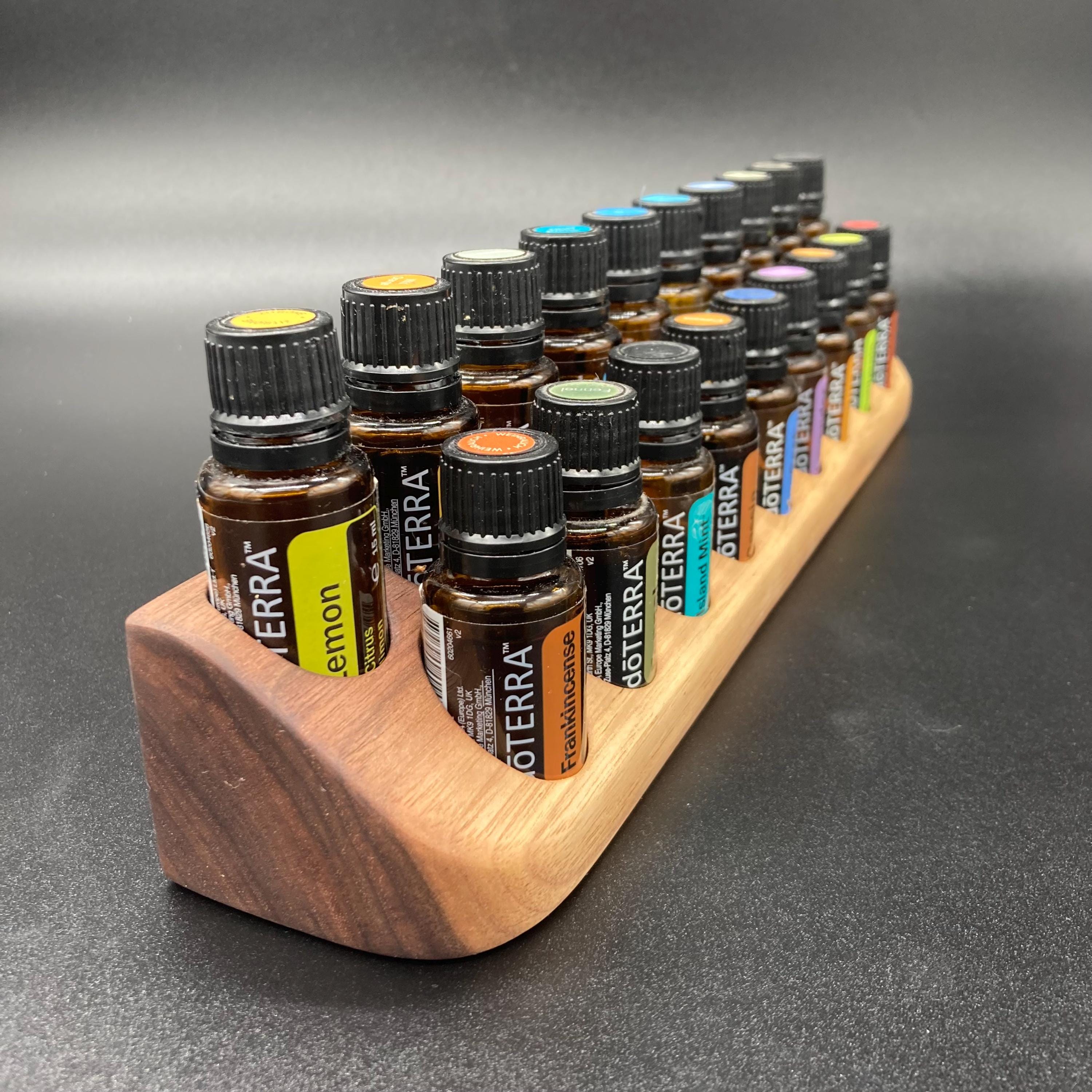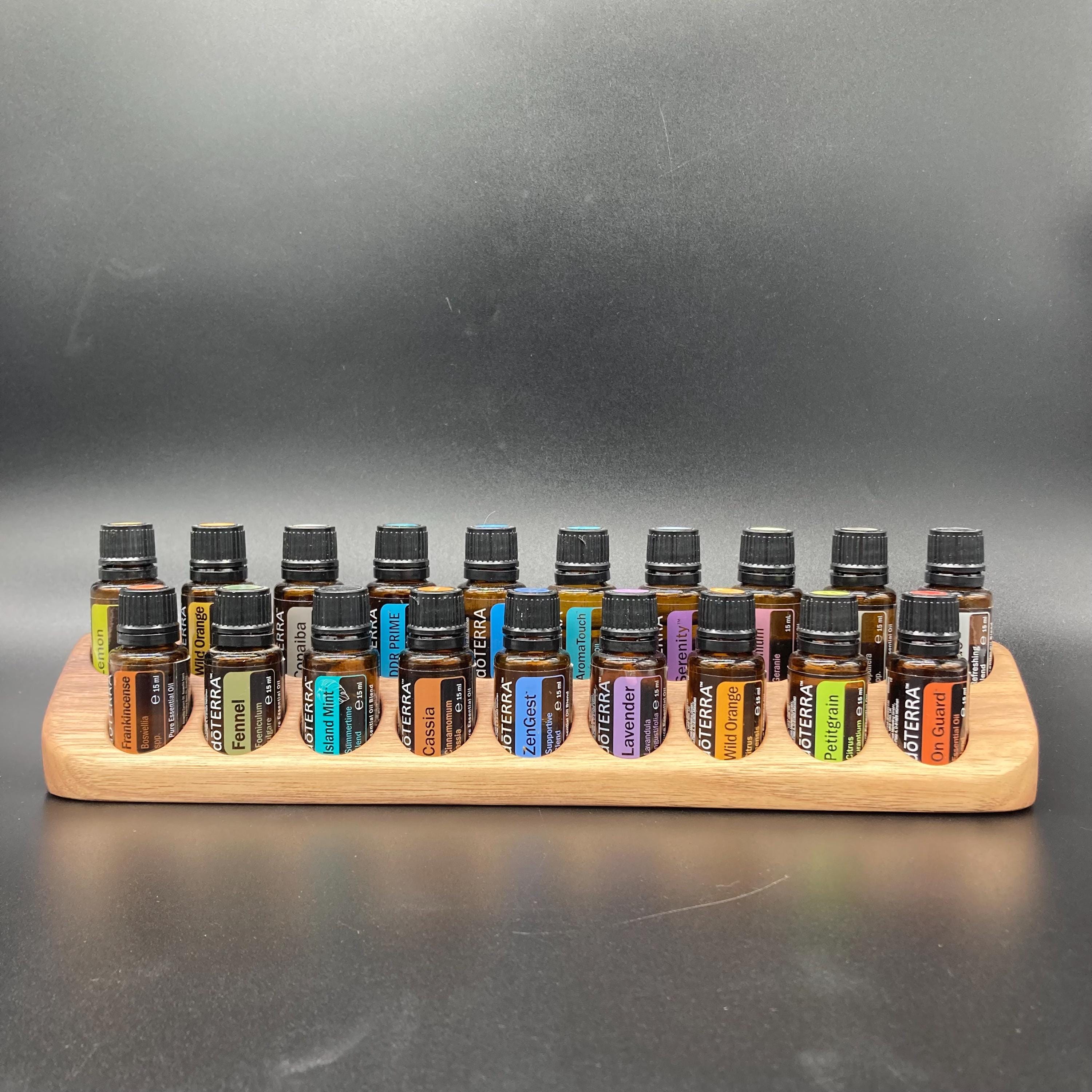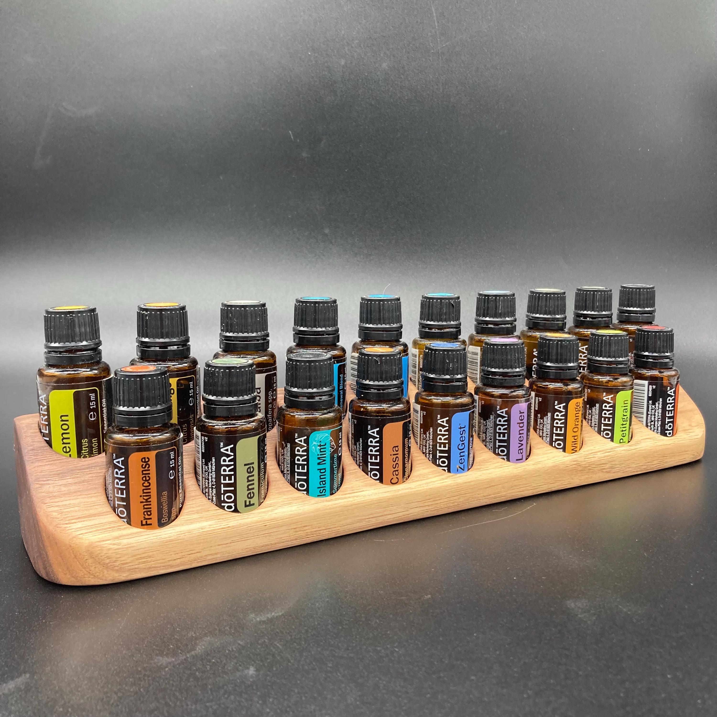This display is ideal for anyone using 15ml bottled oils. It holds 19 oil bottles (28mm diameter), with a 29mm bore.