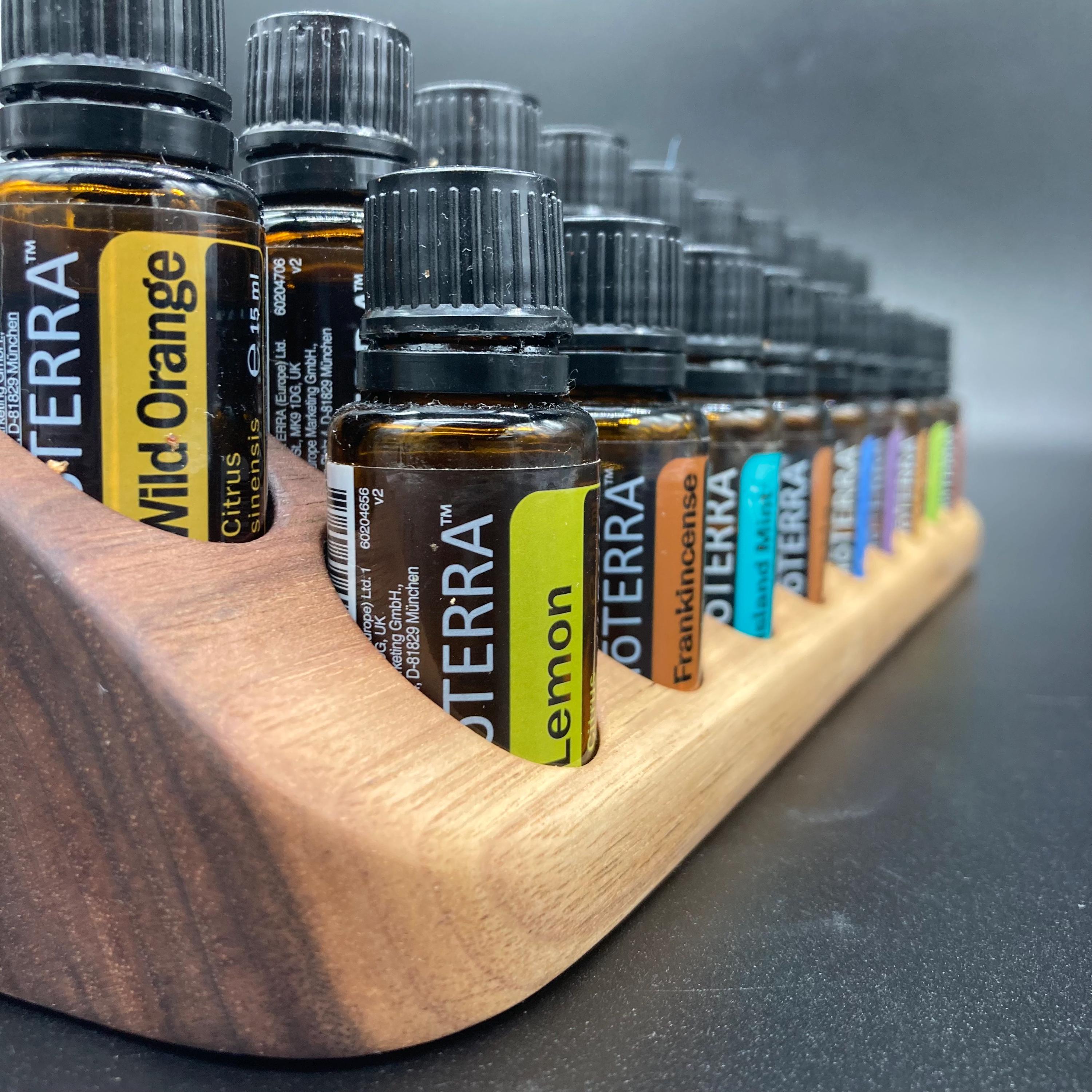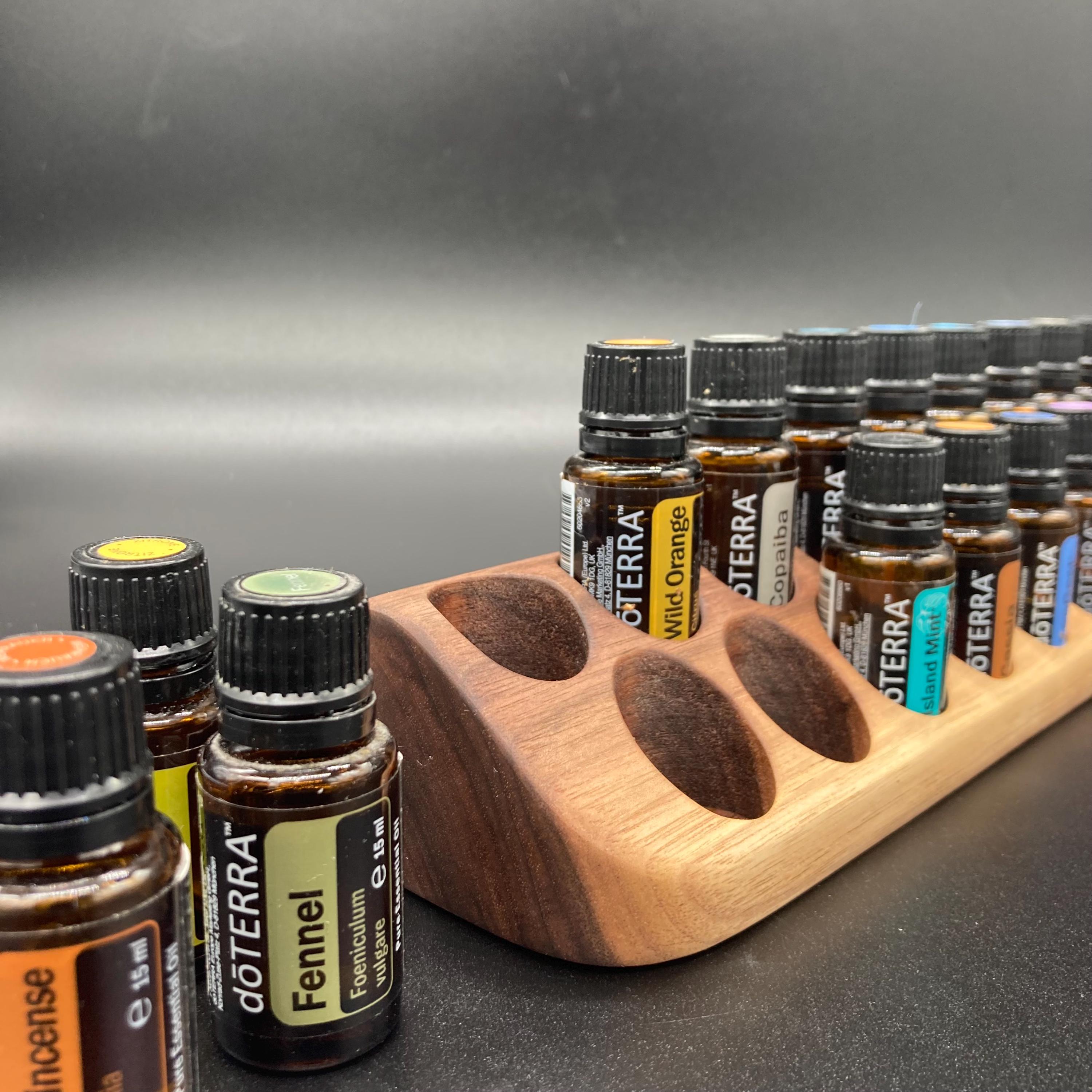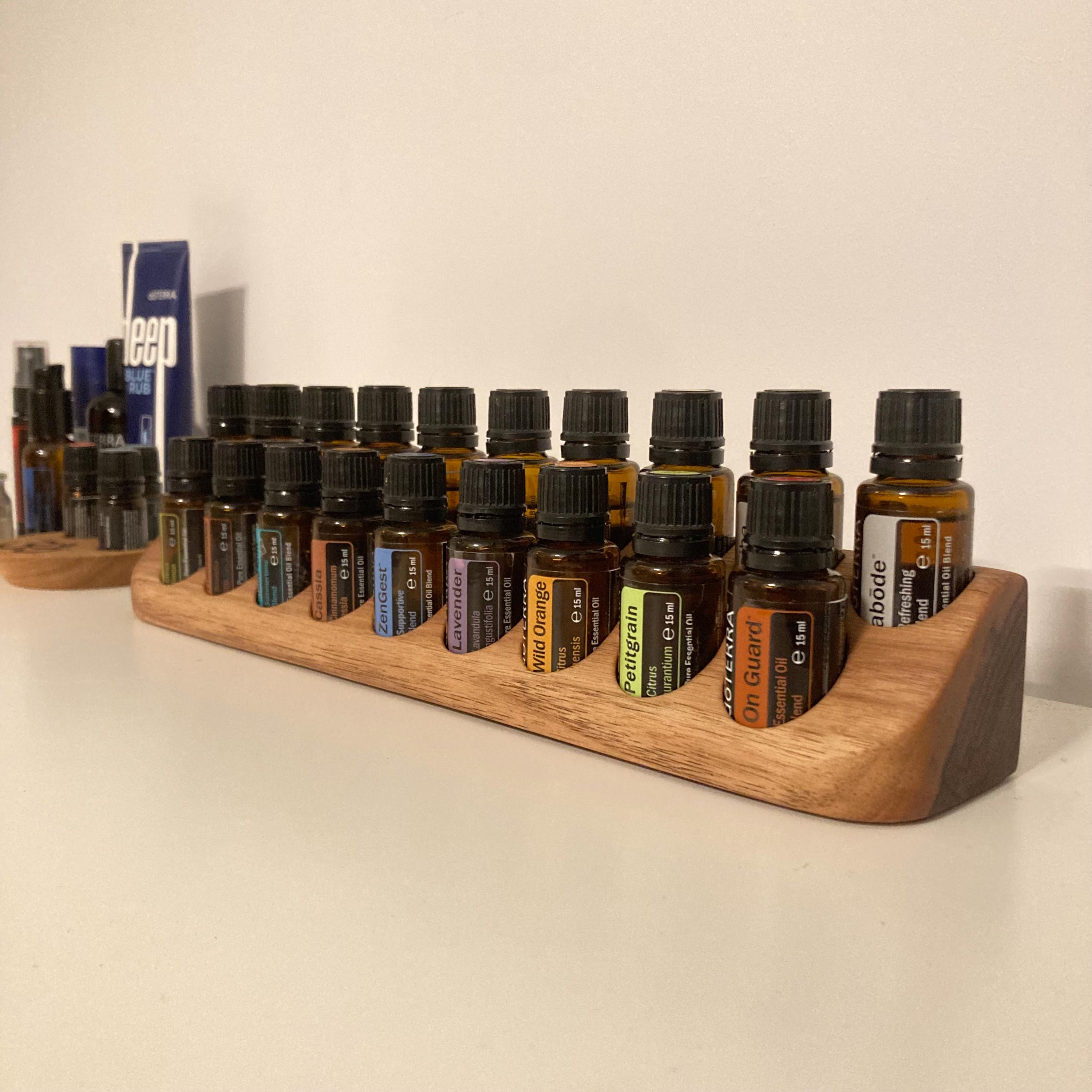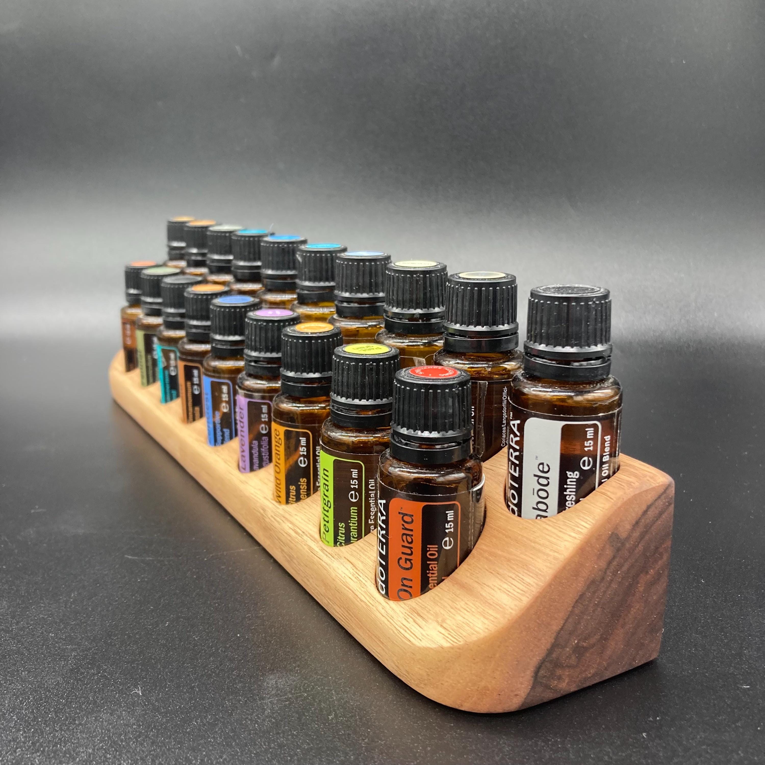 This display is ideal for anyone using 15ml bottled oils. It holds 19 oil bottles (28mm diameter), with a 29mm bore.