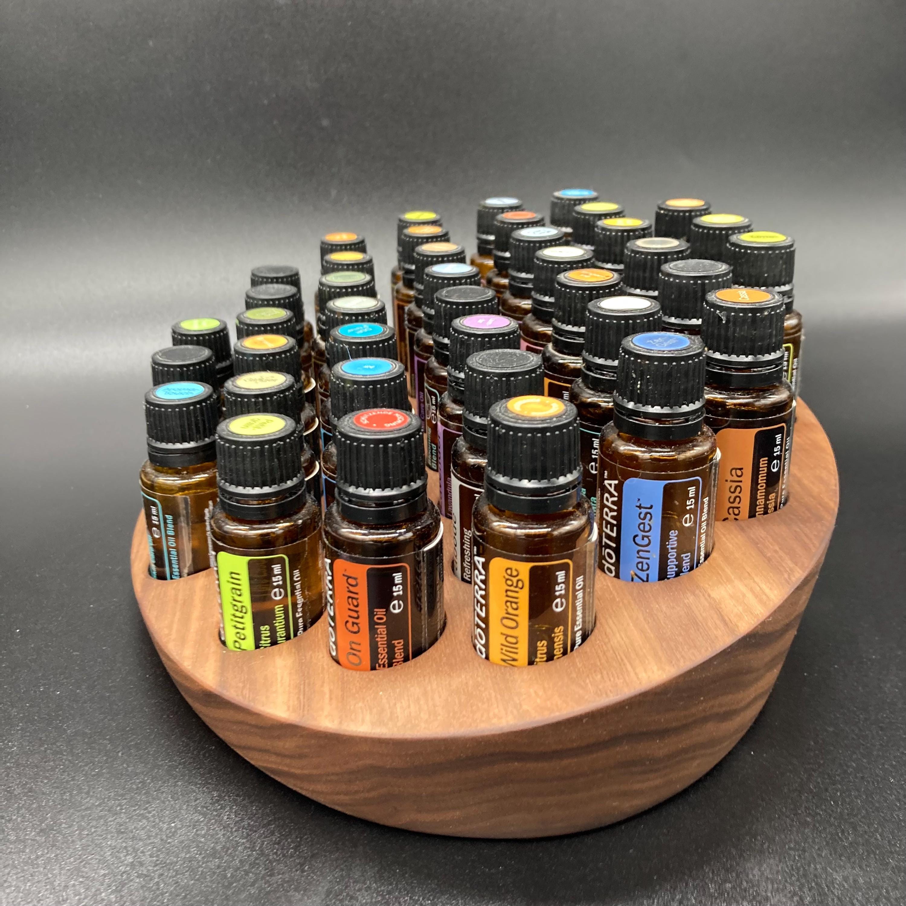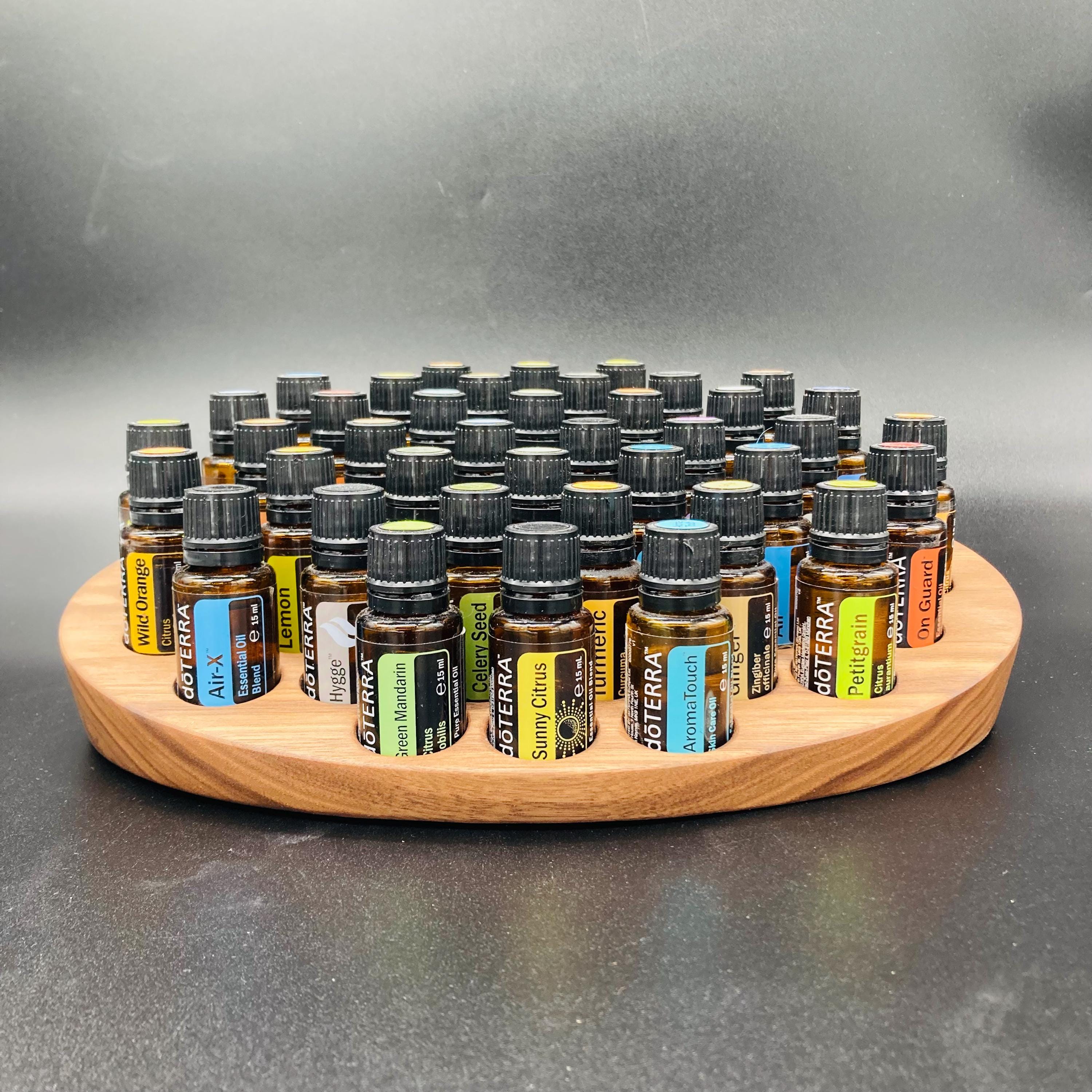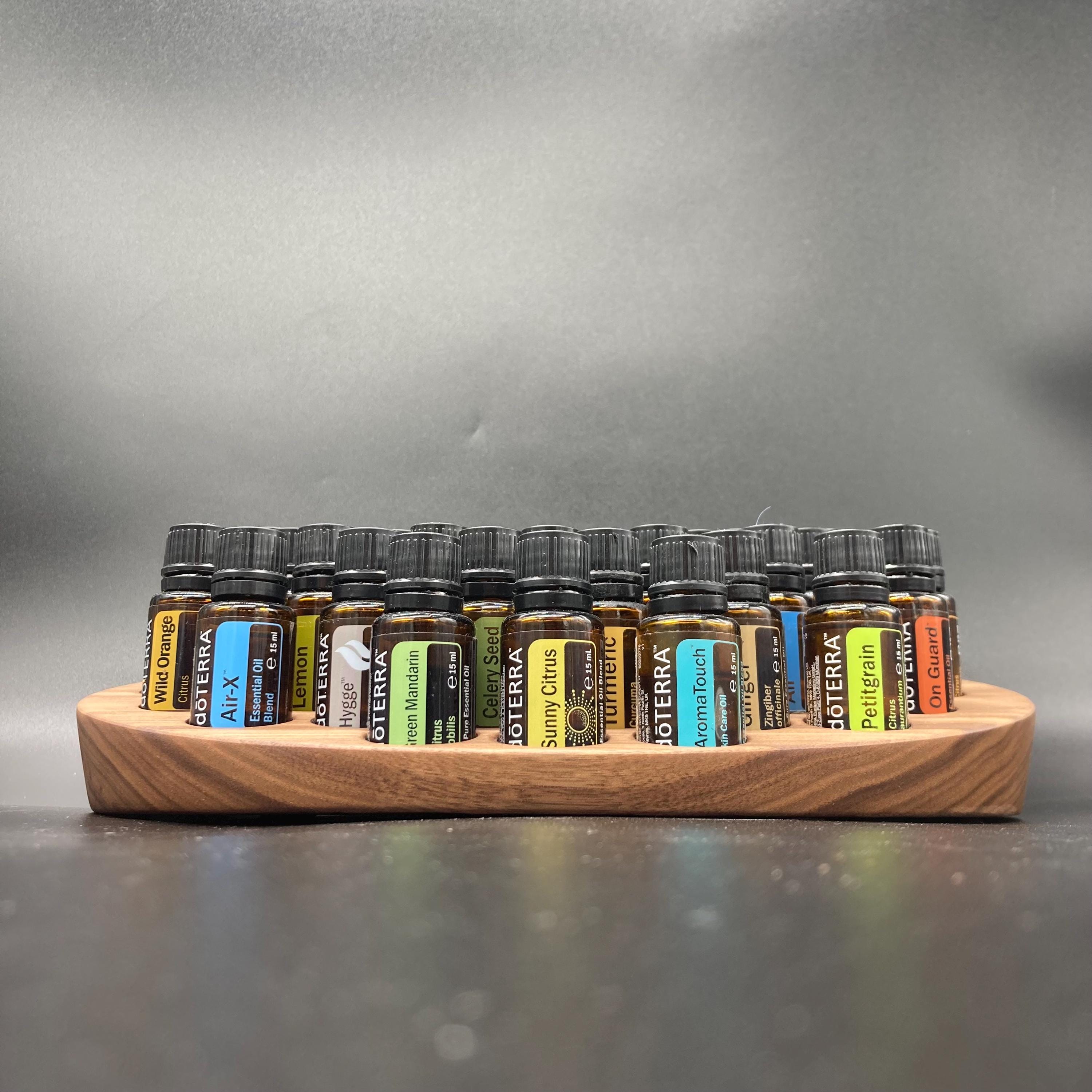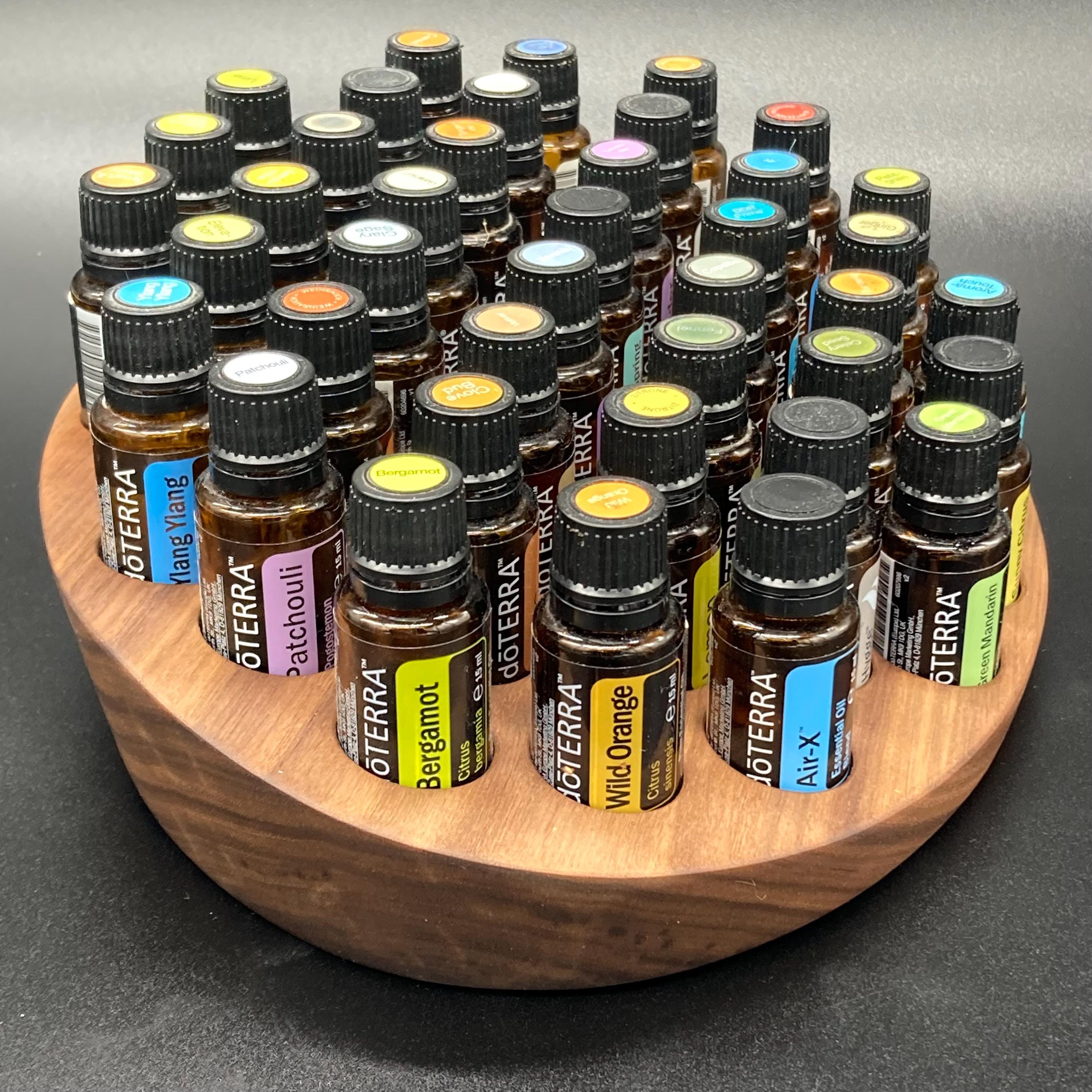 This display is ideal for all essential oils in 15ml bottles. It holds 40 oil bottles (28mm diameter). The staggered arrangement ensures that each label is easy to read. The front of the display is slightly angled, improving handling and visibility, and also giving it a very chic and elegant look.