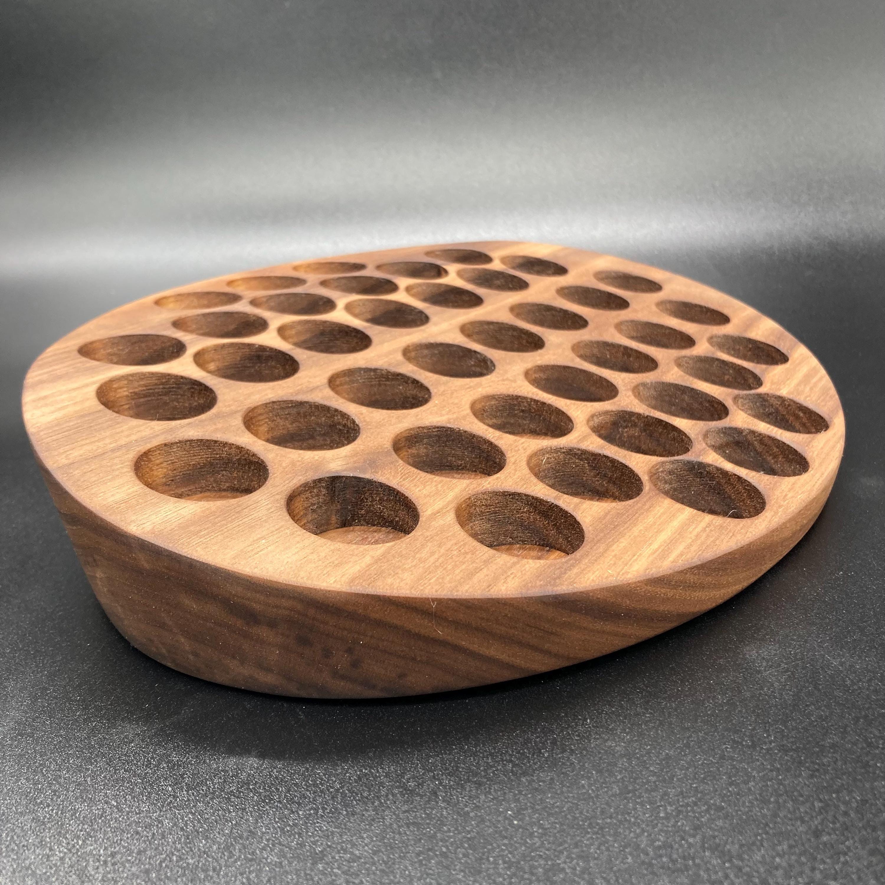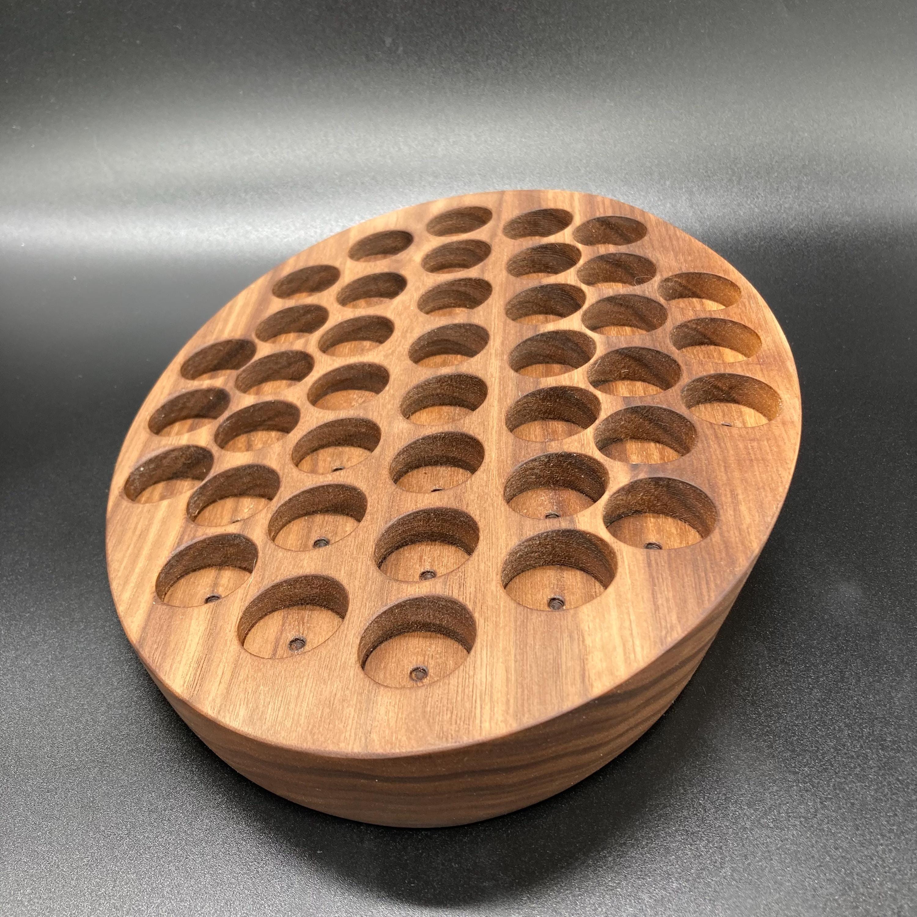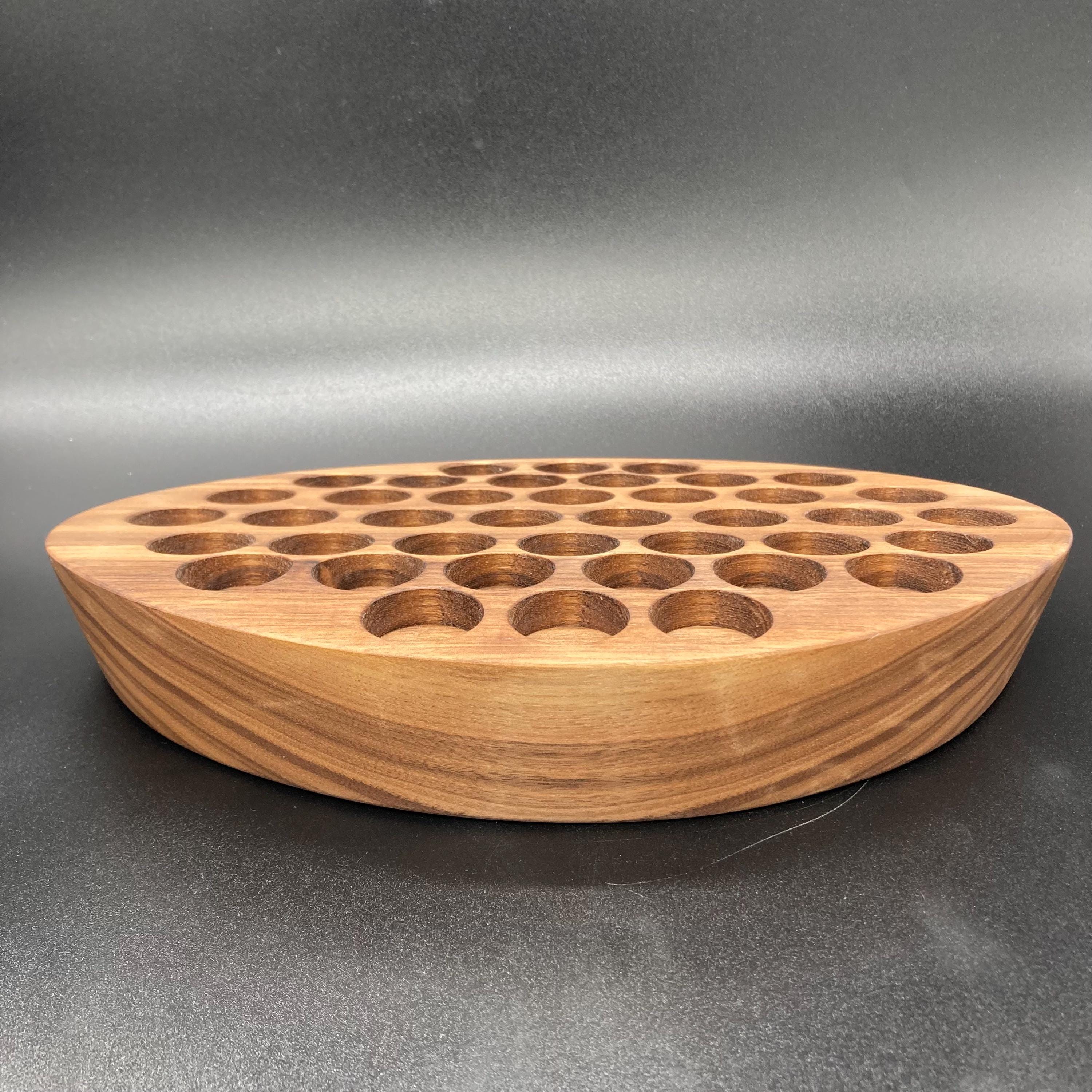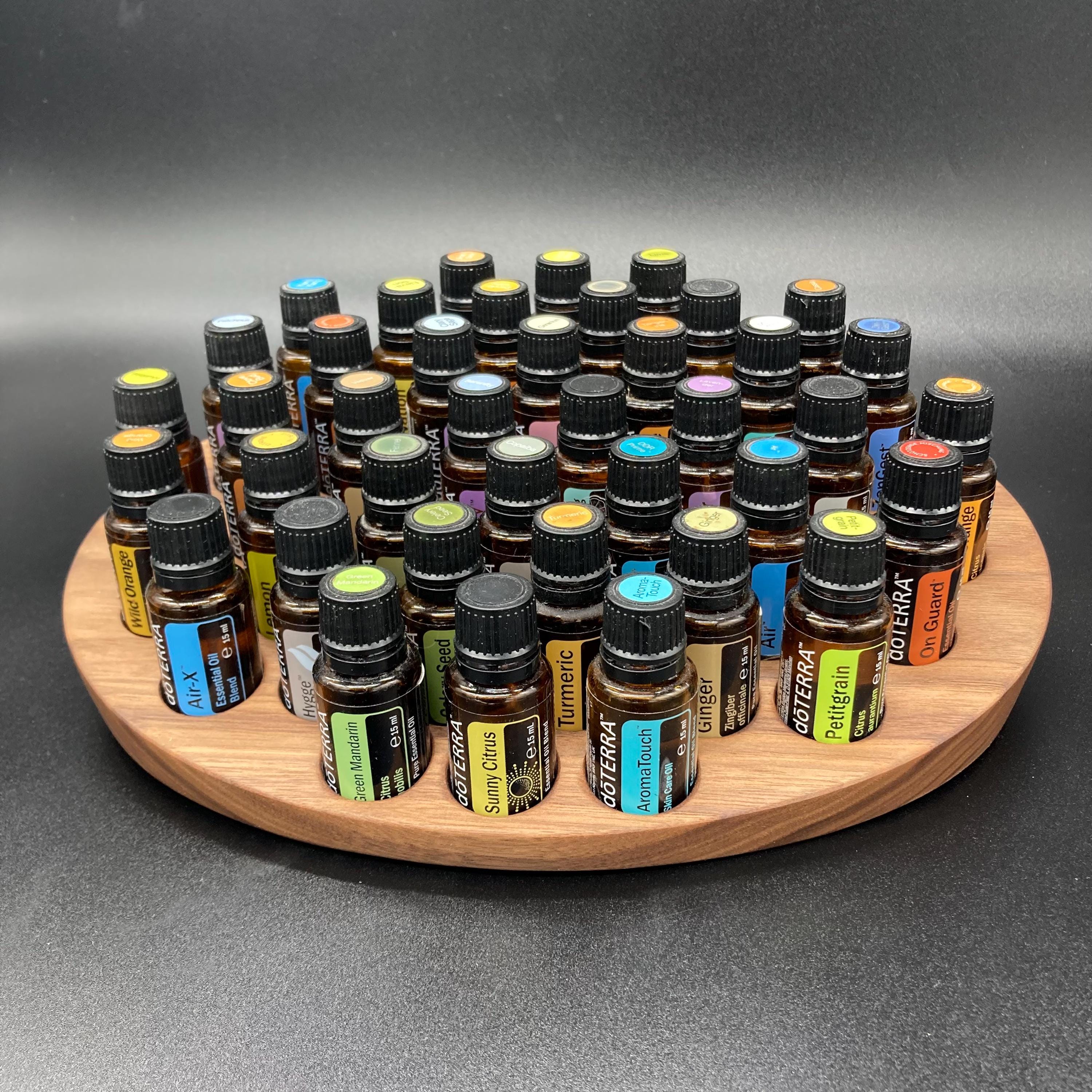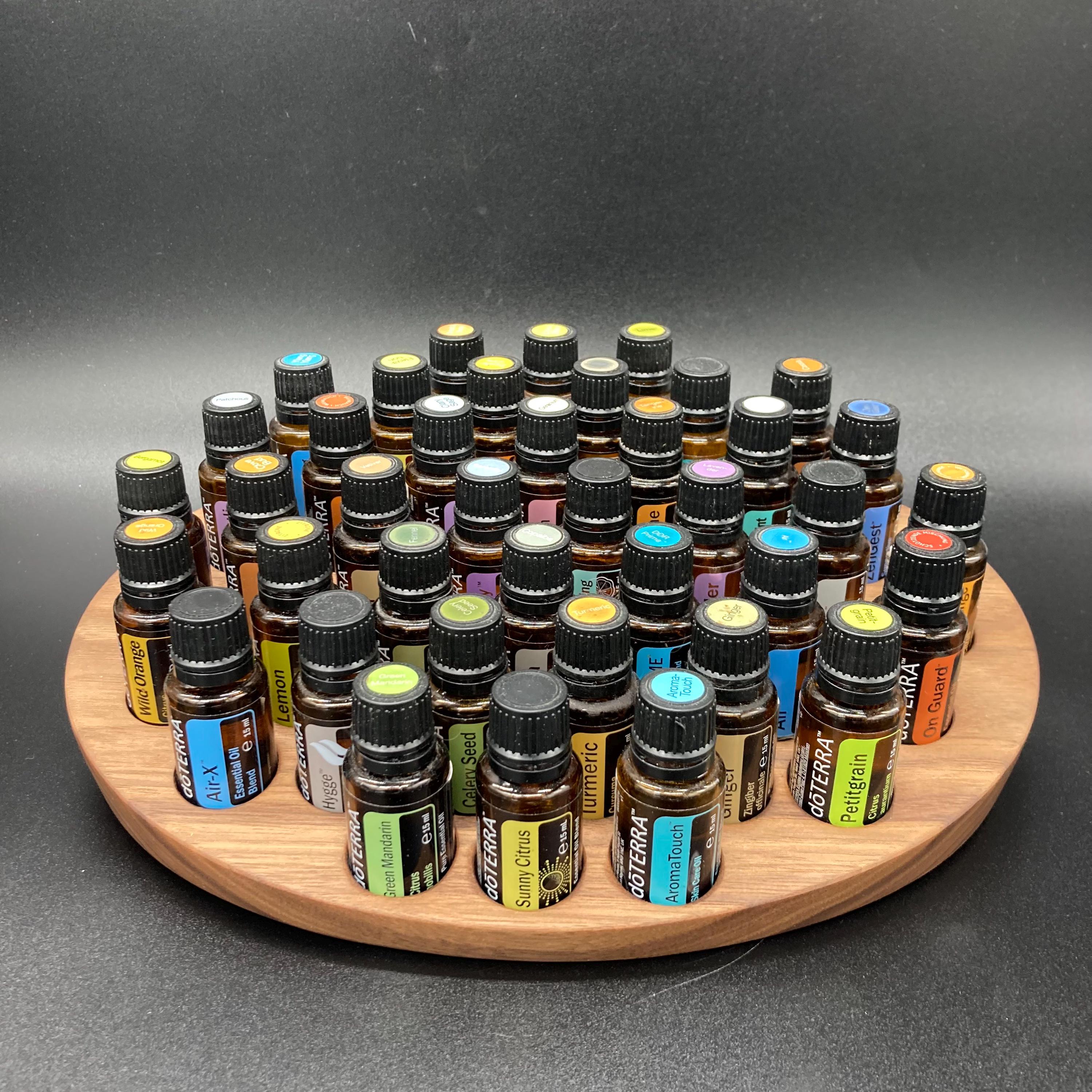 This display is ideal for all essential oils in 15ml bottles. It holds 40 oil bottles (28mm diameter). The staggered arrangement ensures that each label is easy to read. The front of the display is slightly angled, improving handling and visibility, and also giving it a very chic and elegant look.